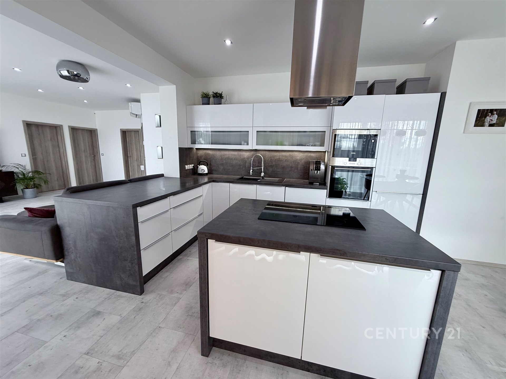 Komfort v bytě zajišťuje klimatizace v každém pokoji, podlahové topení ve všech místnostech – včetně garáže a stínění všech oken je řešeno elektrickými venkovními žaluziemi.