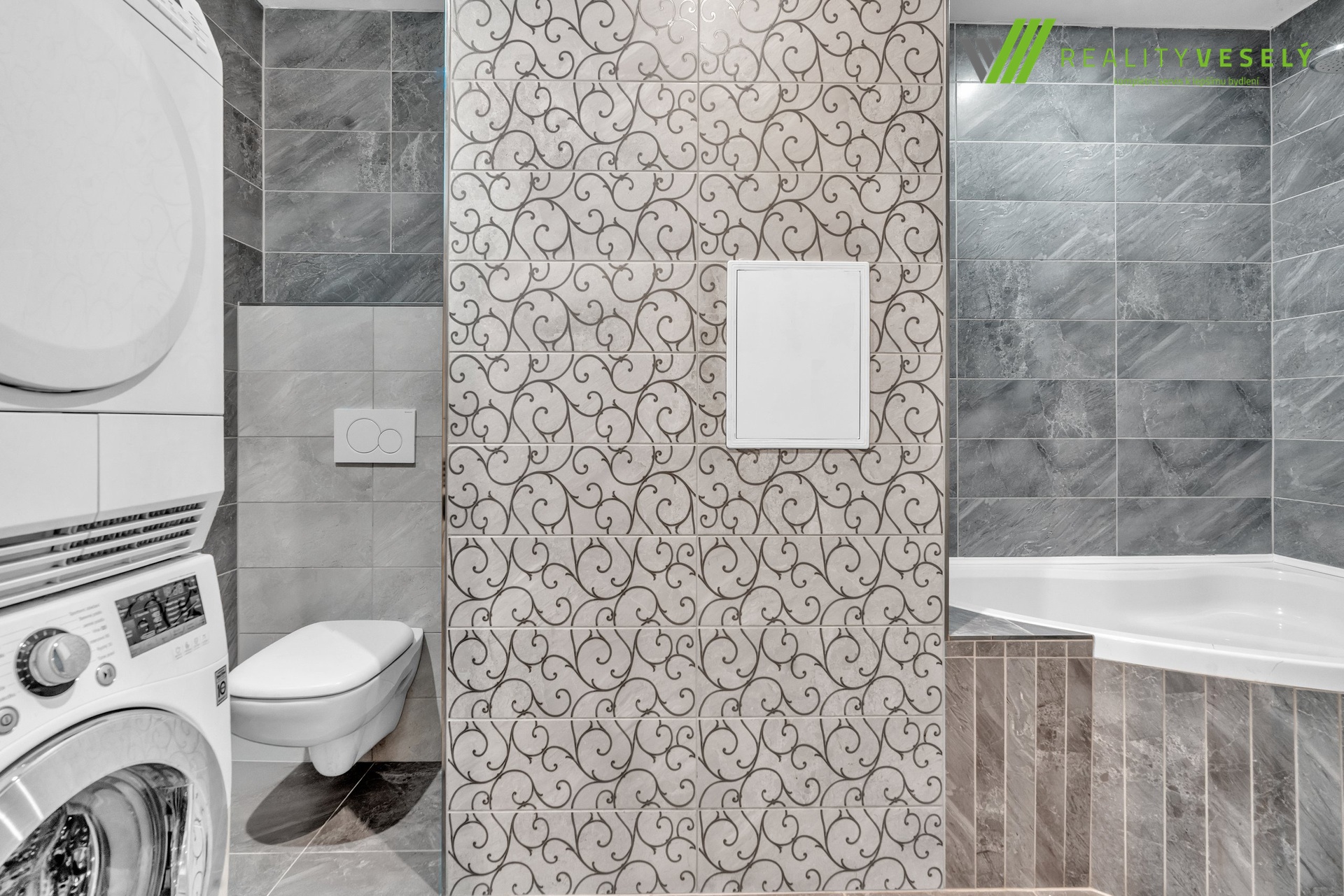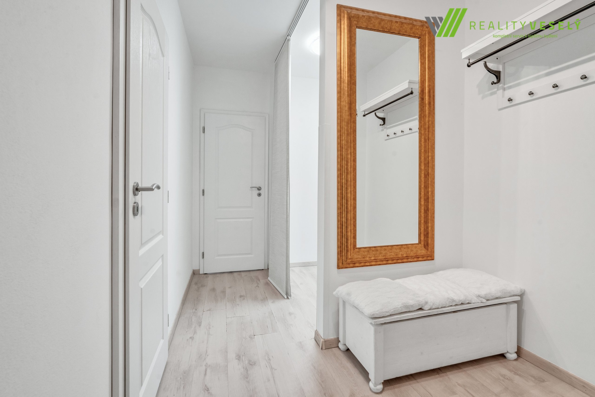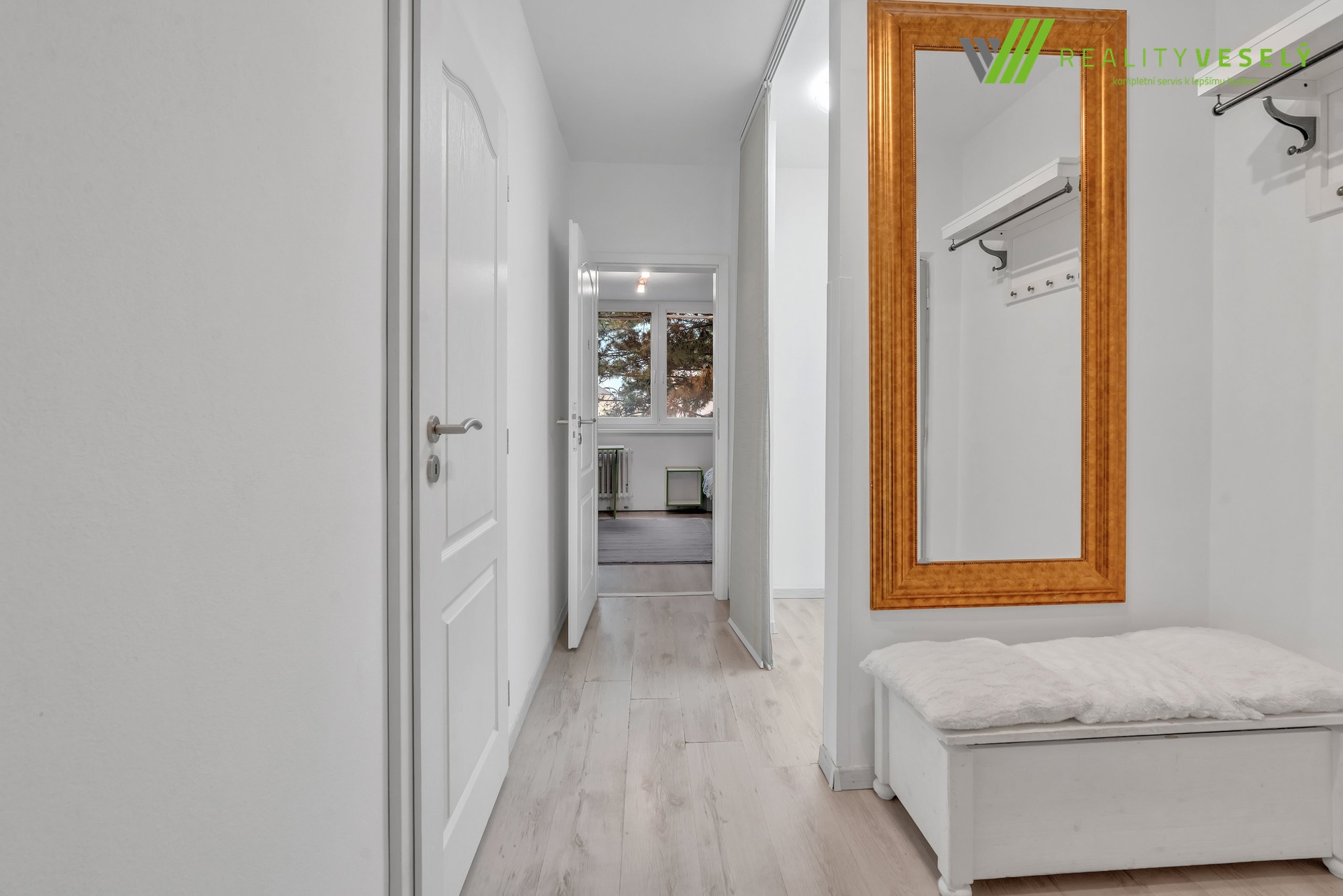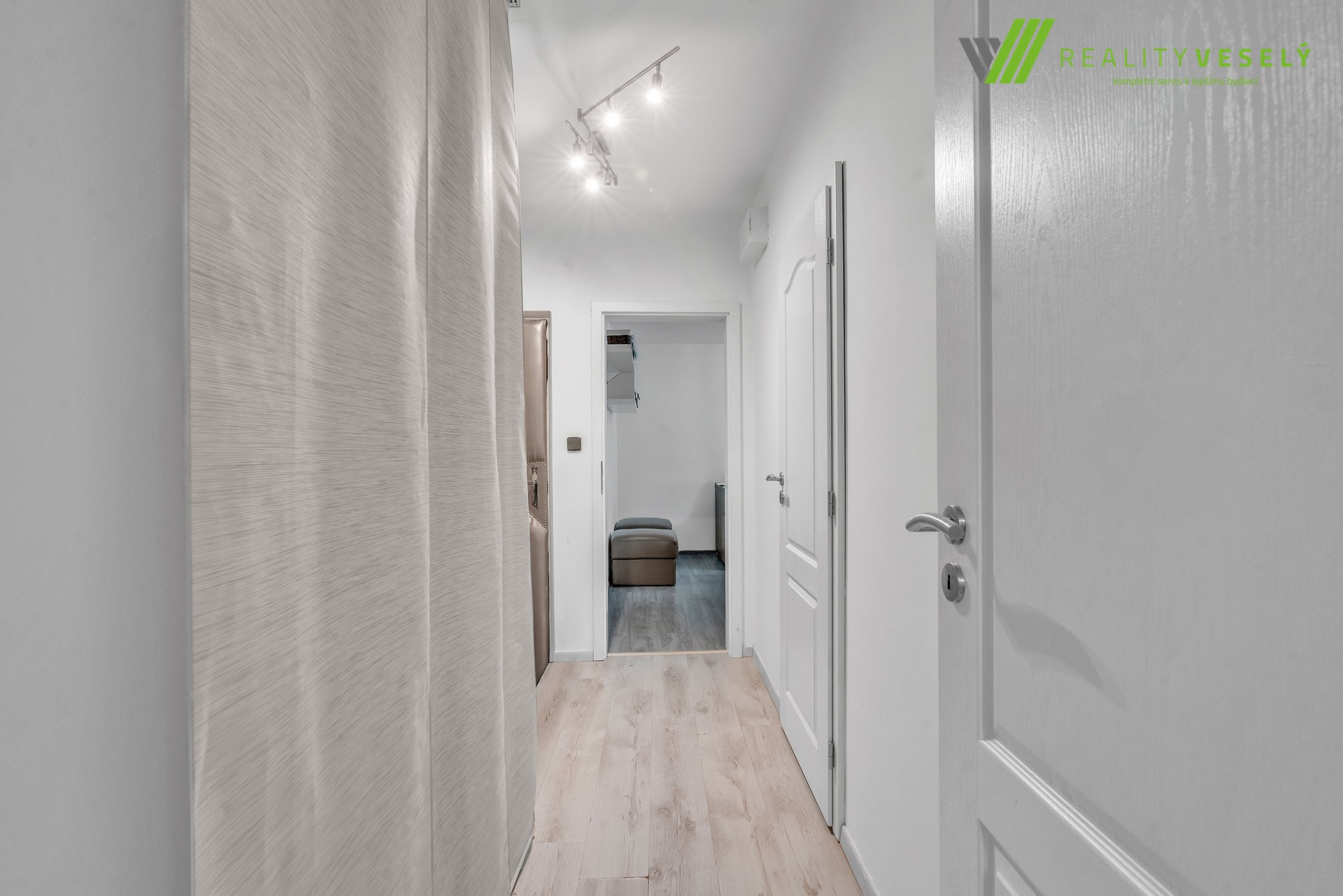 Hned po vstupu vás uvítá prostorná chodba, která nabízí velkorysý prostor pro šatnu či vestavnou skříň. Z chodby je přístupná moderní koupelna s vanou, umyvadlem, toaletou a vyhrazeným místem pro pračku i sušičku. Přímo z chodby se rovněž vstupuje do samostatného, neprůchozího dětského pokoje.