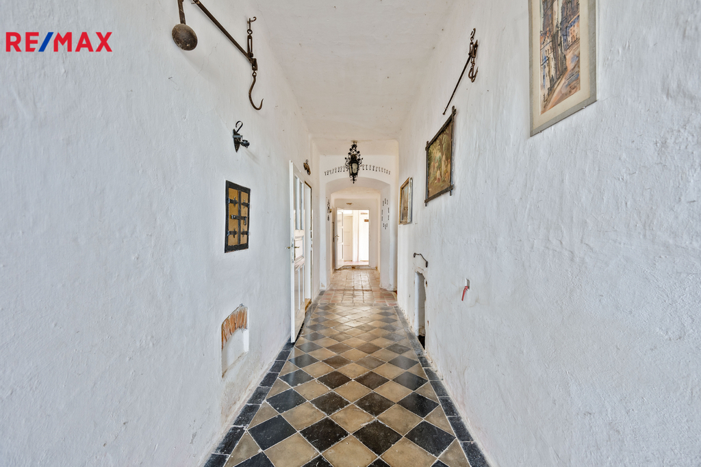 Středem domu prochází dlouhá chodba, z níž je přístup do jednotlivých místností.