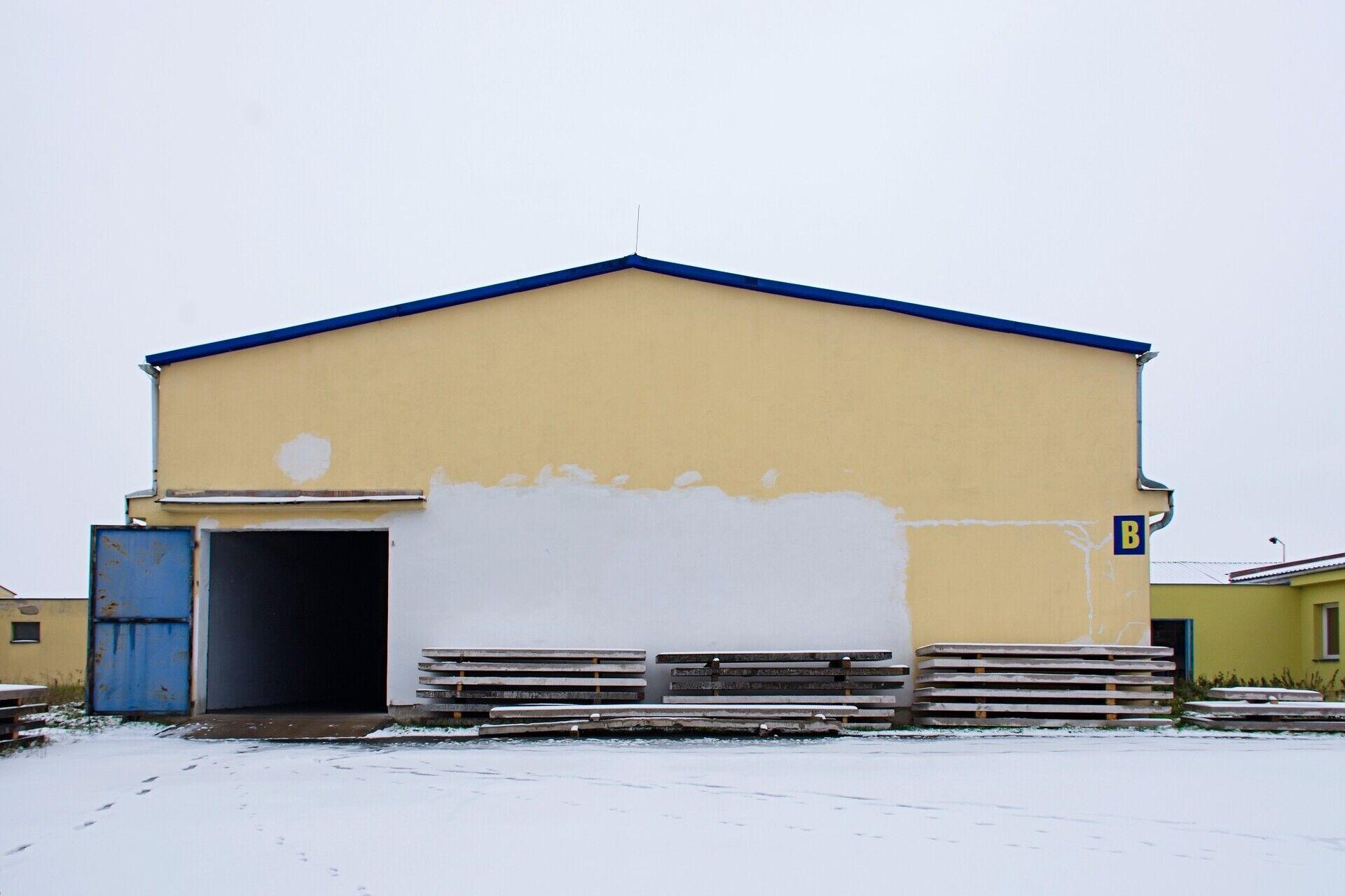 -- hala 3 o výměře 222 m2 (14,6 m × 15,2 m), výška pod vazník 5,3 m