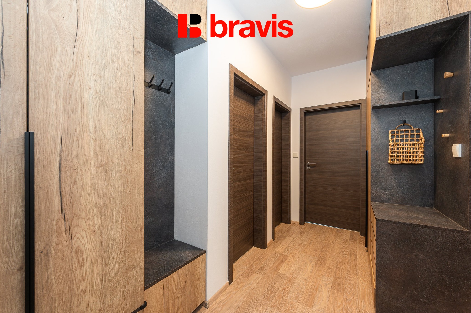 Při vstupu do bytu vás přivítá příjemná chodba s dostatkem úložných prostor.