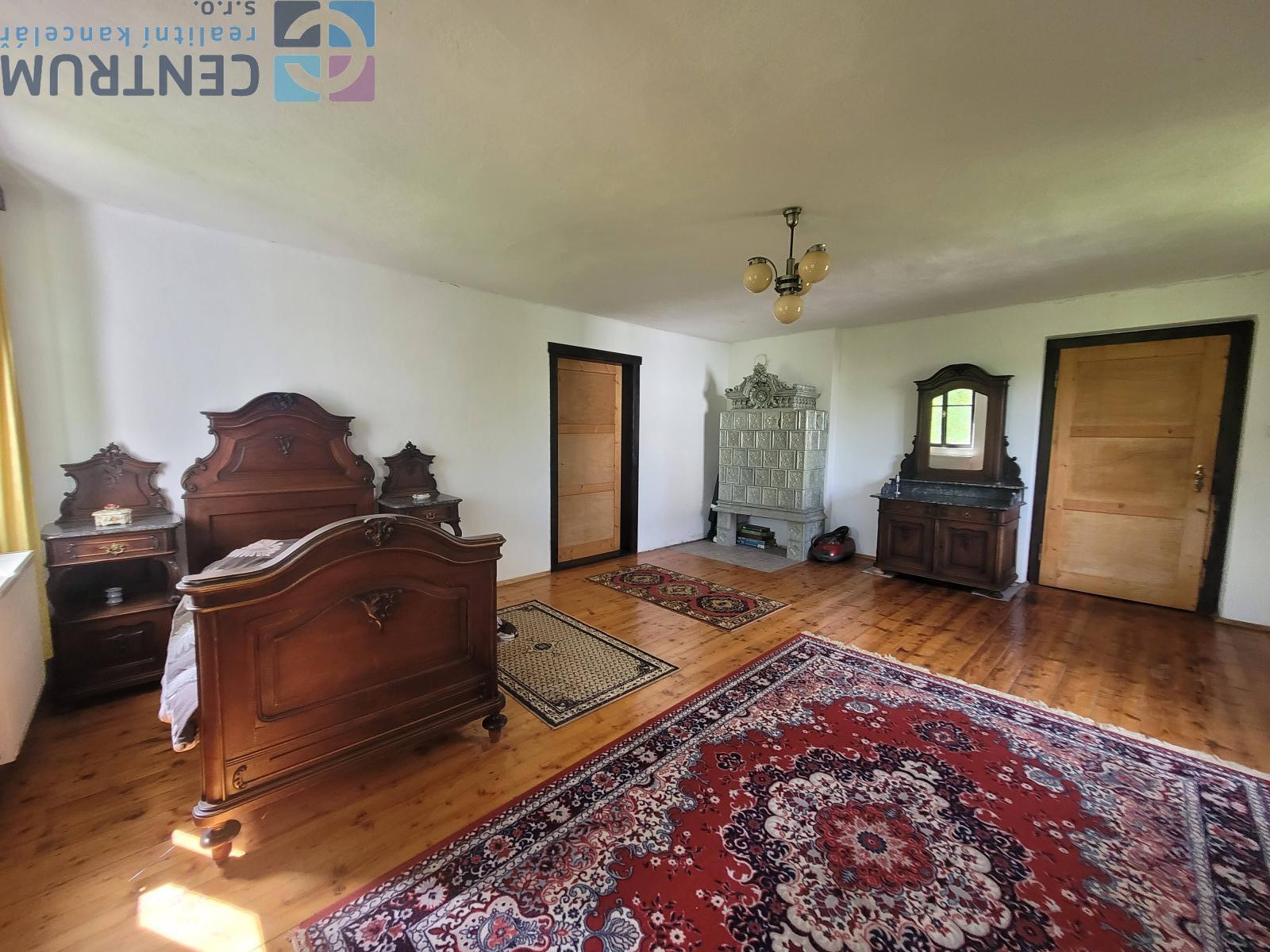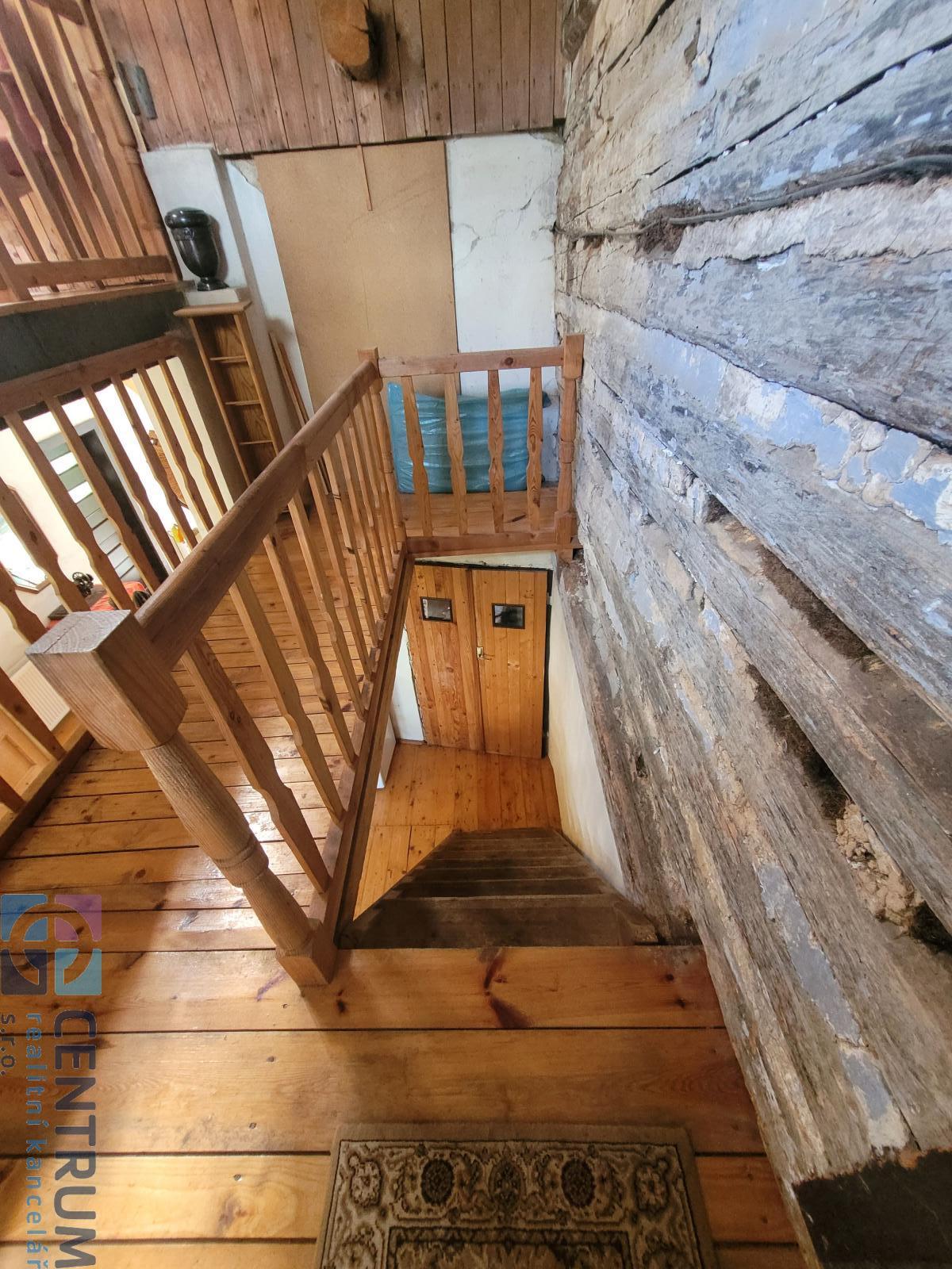 1. patro : dřevěné schodiště, komora v mezipatře, chodba a dva prostorné pokoje, které v současné době slouží jako ložnice. K domu náleží klenutý sklep ( 15 m2 ) vč studánky, kterou je možno využít jako užitkovou vodu.