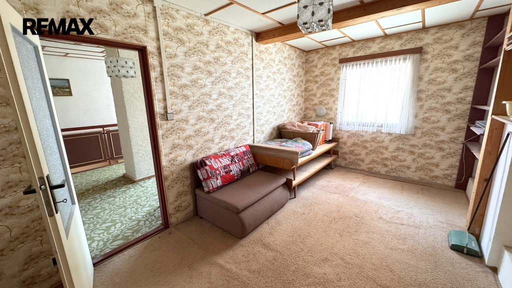 • Horní patro: Je připraveno k celkové rekonstrukci podle představ nového majitele.