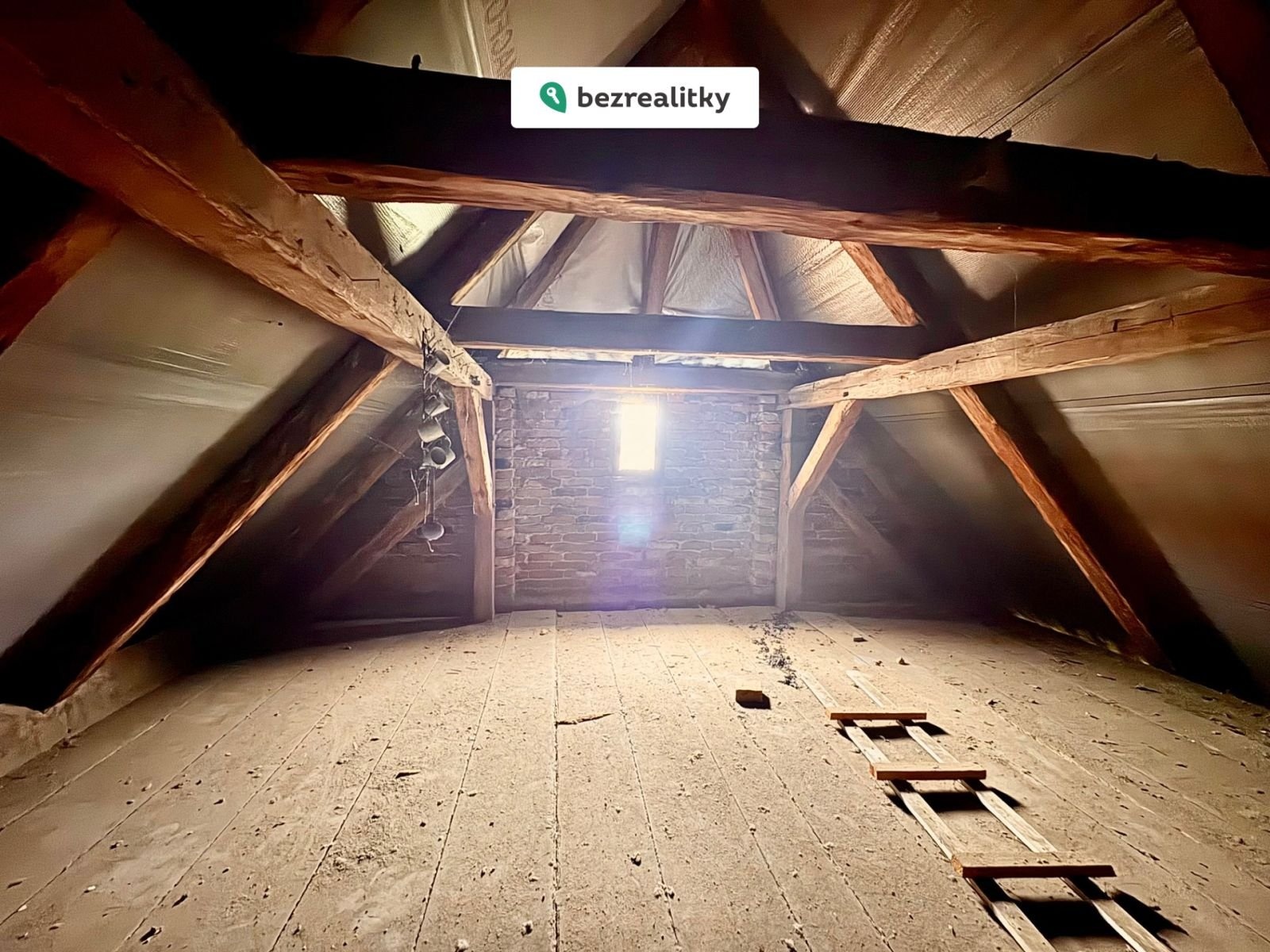 V přízemí domu se nachází prostorná vstupní chodba s krbovými kamny, koupelna s vanou, obývací pokoj průchozí do ložnice a velká kuchyň s jídelnou. Z chodby je vstup do podkroví, kde lze vybudovat celé další patro či více pater. Dům je částečně podsklepený a prošel v roce 2010 částečnou rekonstrukcí (střecha, okna, elektroinstalace). Původní technický stav domu přirozeně počítá s rekonstrukcí, díky níž si může budoucí majitel přizpůsobit nemovitost plně svým představám. Odhadované náklady na rekonstrukci stávajícího objektu činí cca 750 000 Kč. Vytápění je řešeno plynovým kotlem s litinovými radiátory a krbovými kamny. Dům je napojen na vodovod a kanalizaci, na pozemku je navíc vlastní studna.