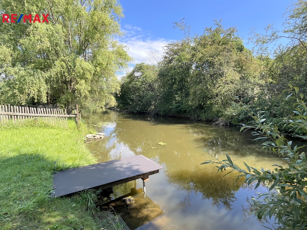 Pozemek je mírně svažitý, osázený vzrostlými ovocnými stromy. Ve spodní části je ukončen Hořínským potokem, který navazuje na řeku Labe – místo s jedinečnou atmosférou a možností přímého vstupu k vodě.