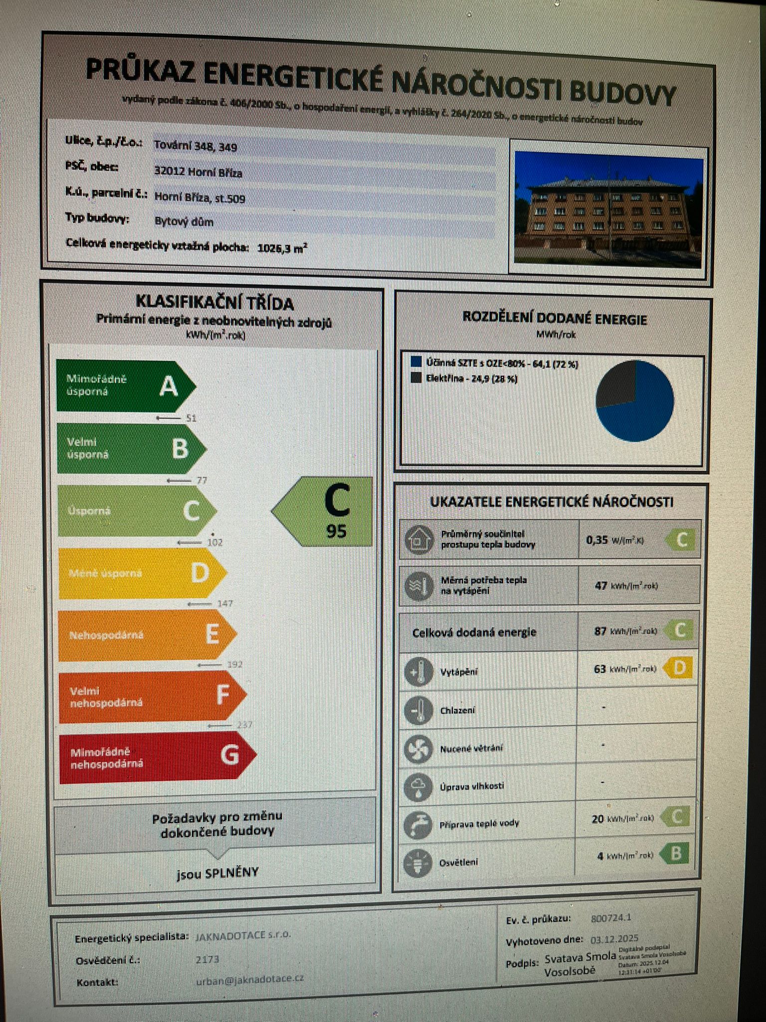 Byt se prodává včetně vybavení. Dům má plastová okna (v plánu výměna za nová 3 komorová) a v roce 2026 je plánováno zateplení domu – již se vybírá realizační firma.