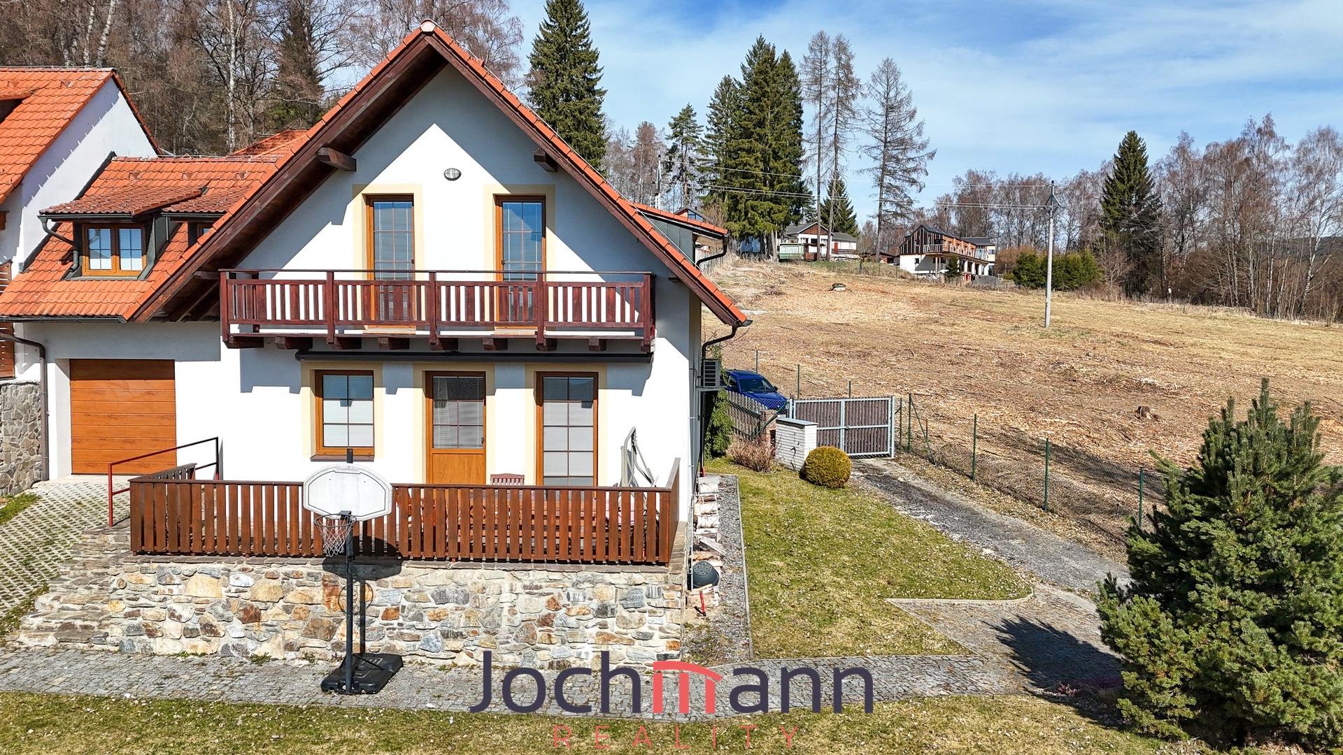 V příjemné dojezdové vzdálenosti se dále nachází lyžařské středisko Kramolín, Hochficht, běžecké stopy, koridor na zimní bruslení při zámrzu přímo v místě a mnoho dalšího sportovního vyžití. Příjezd k nemovitosti je možný přes vlastní příjezdovou zpevněnou komunikaci a celá okrasná zahrada disponuje příjemnými výhledy na jezero. Vnitřní dispozice domu pak nabízí v přízemí budovy garáž, předsíň s technickou místností, koupelnu s toaletou, pračkou a sprchovým koutem a velkoryse prostornou hlavní obytnou místnost s částečně oddělenou kuchyní a výstupem na terasu s výsuvným zastřešením. V podkroví se pak nachází druhá koupelna s vanou a WC a tři samostatné, neprůchozí a dobře prostorově řešené ložnice. Z jedné z nich je následně řešený vstup na balkon s krásným výhledem.