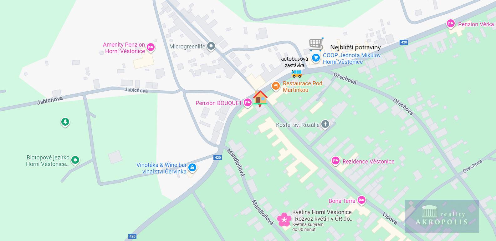 Pozemek je dle územního plánu veden jako plocha občanské vybavenosti a Smíšené obytné území, takže zde lze kromě bydlení realizovat i podnikatelské záměry – například penzion, menší kavárnu, vinotéku, prodejní stánek či dílnu.