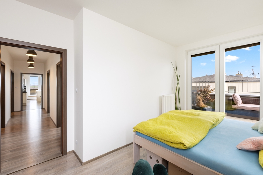 Byt nabízí nerušený klid a soukromí v domě s dostatkem přirozeného denního světla a výhodným dispozičním řešením, nacházející se v posledním 4NP s výtahem.