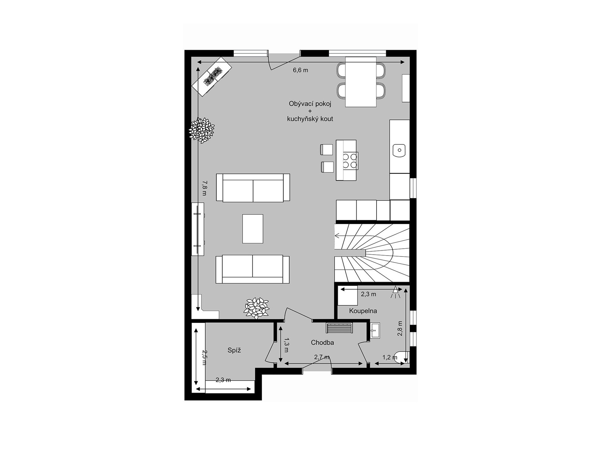 - Zastavěná plocha: 77 m²