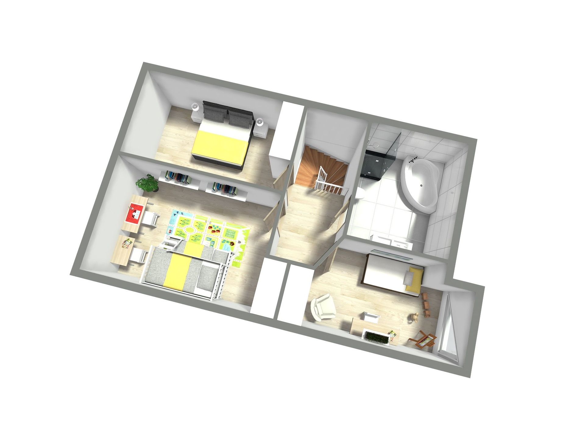 - nad chodbou prostorný půdní prostor pro uložení věcí či možnost vybudování mezonet místnosti