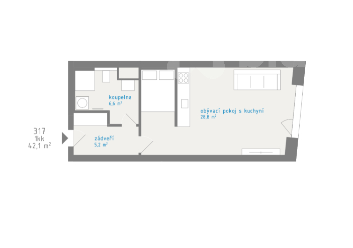 | Dispozice/podlahová plocha: | 1+kk/42 m² |