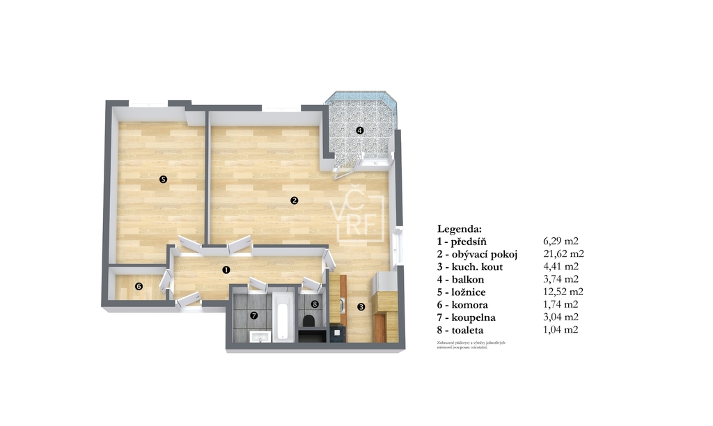 | Dispozice/podlahová plocha: | 2+kk/56 m² |