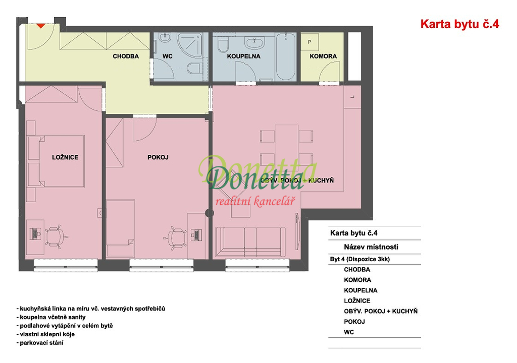 - Dispozice bytu: 3+kk