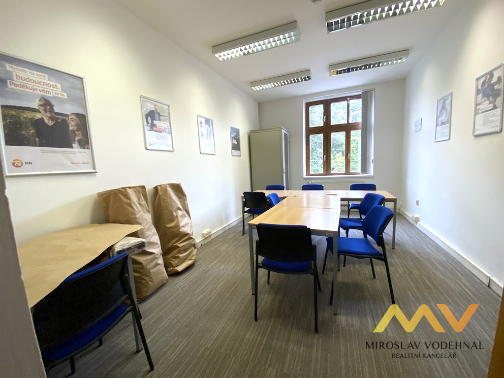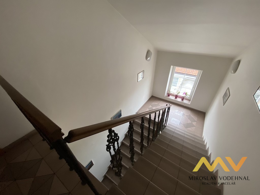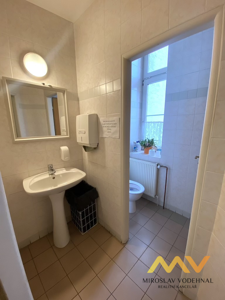 V přízemí se nachází nebytový prostor o výměře 47 m² s vlastní výlohou a vstupem přímo z ulice, který je ideální pro obchod, kontaktní místo nebo kancelář. Prostor je rozdělen na přední část vhodnou jako prodejní plocha či klientská zóna a zadní část využitelnou jako sklad nebo zázemí, k dispozici je sociální zařízení přístupné z chodby domu. Díky poloze na frekventované ulici nabízí výbornou viditelnost a dostupnost pro zákazníky.