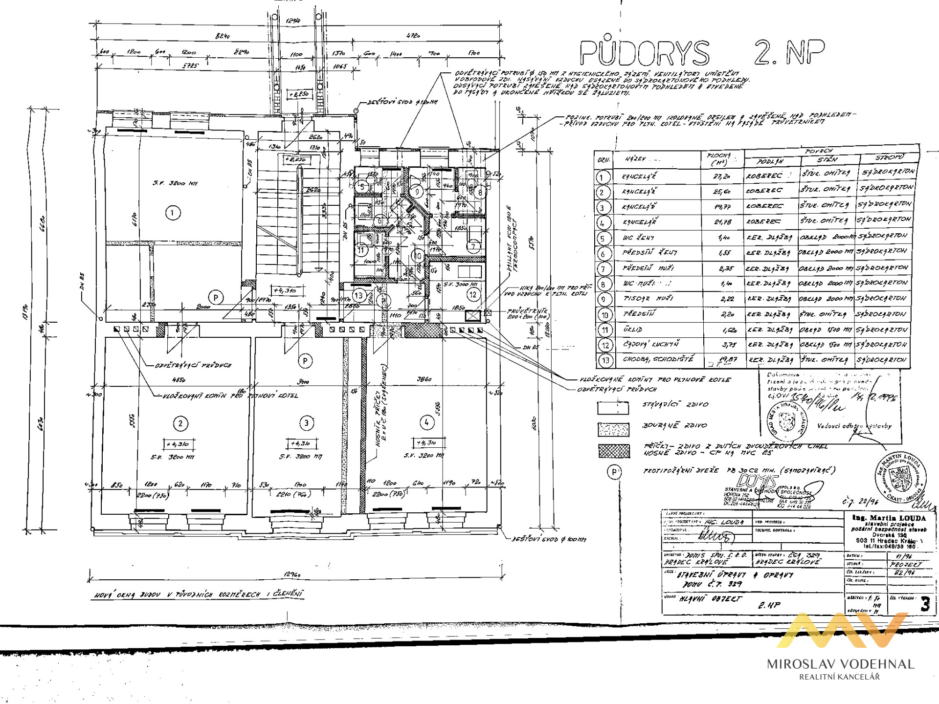 Ve 2. nadzemním podlaží se nachází kancelářské prostory o výměře 131 m², které tvoří čtyři samostatné kanceláře se společným zázemím – dámské a pánské toalety, kuchyňka a úklidová komora.