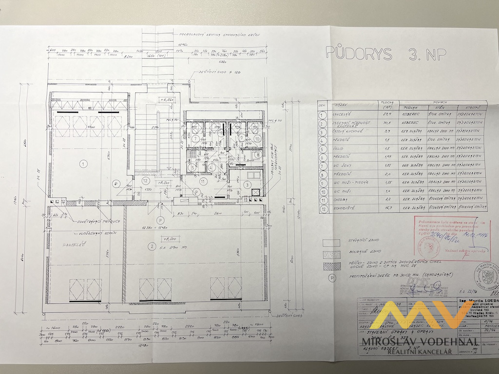 Ve 3. nadzemním podlaží jsou umístěny další kancelářské prostory o výměře 128 m², které zahrnují tři kanceláře s vlastním zázemím včetně kuchyňky, toalet a komory.