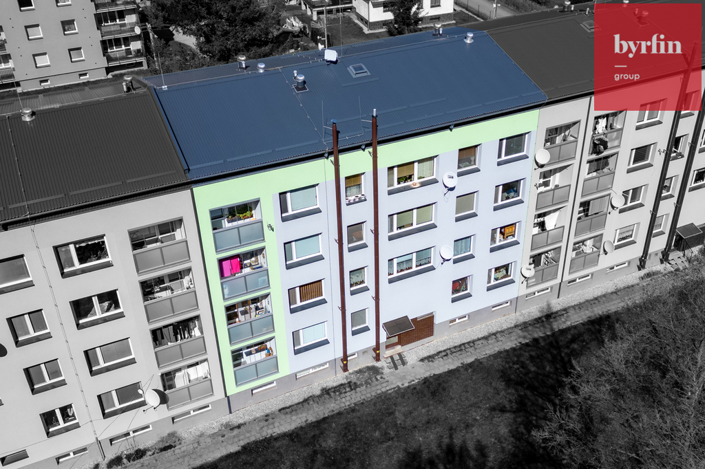 Byt se nachází ve 3. patře domu bez výtahu a je v dobrém, udržovaném stavu, bez nutnosti okamžitých investic (modernizace cca před 13 lety). Dům je po revitalizaci – zateplená fasáda a nová sedlová střecha. Parkování je bezproblémové před domem, za domem je volně přístupný prostor zeleně vhodný například na procházky nebo krátký odpočinek.