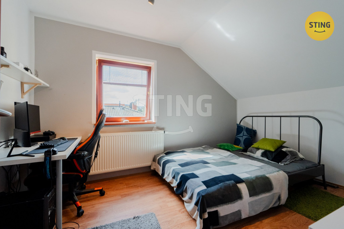 V patře jsou tři samostatné pokoje (jeden s vlastním balkónem), velkorysá herna s možností vybudování druhé kuchyně či zázemí pro dospívající děti, dále prostorná koupelna a komora. Dispozice tak ideálně odpovídá potřebám čtyřčlenné rodiny – každý má svůj klid a zároveň dostatek společného prostoru.