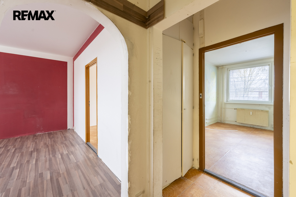 Bytové jádro je zděné a jednotka je vyklizená a připravená k rekonstrukci, což novému majiteli umožňuje realizaci vlastních představ bez nutnosti složitých úprav.