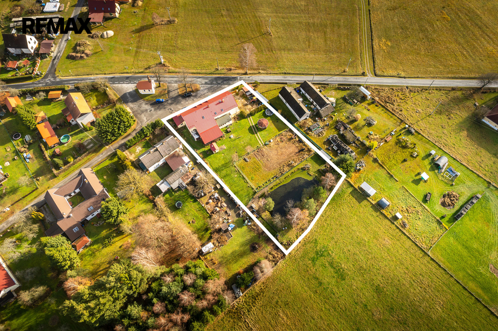 K nemovitosti náleží rozlehlý pozemek o rozloze 2.783 m2, kde je k dispozici přírodní jezírko- rybník, velký výběh pro chov slepic, altánek, pergola, udírna a garáž či dílna. Je zde dostatek prostoru pro pěstování plodin, či výstavbu dětského hřiště nebo bazénu. Rozloha pozemku nabízí v tomto směru široké využití.