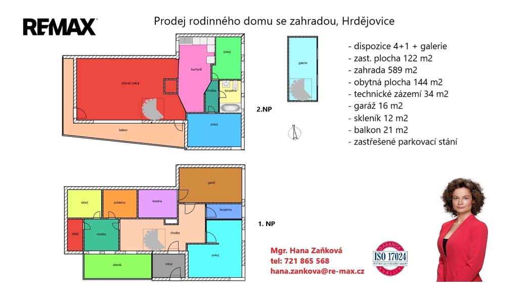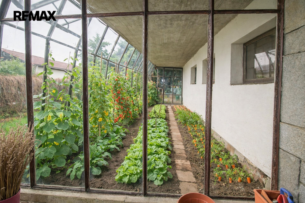 Obytná část je dispozičně řešena jako 4+1 o obytné podlahové ploše 144 m2 + technické zázemí 34 m2+garáž 16 m2 + skleník 12 m2+ balkon 21 m2.