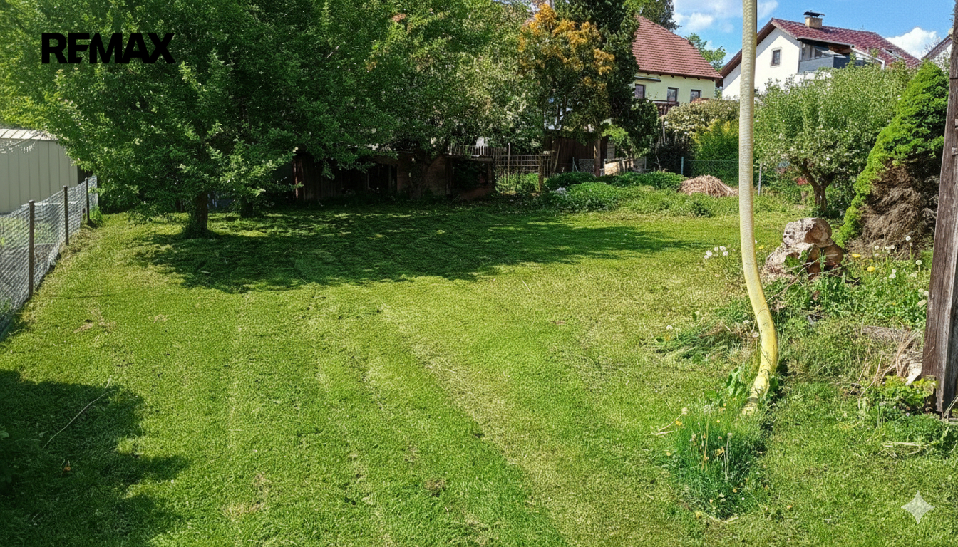Pozemek je kompletně oplocen, přístup je z asfaltové komunikace plechovými vraty. Zahrada je osázená okrasnými dřevinami a ovocnými stromy.
