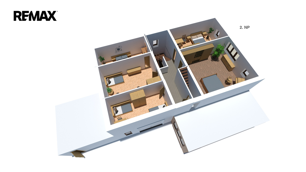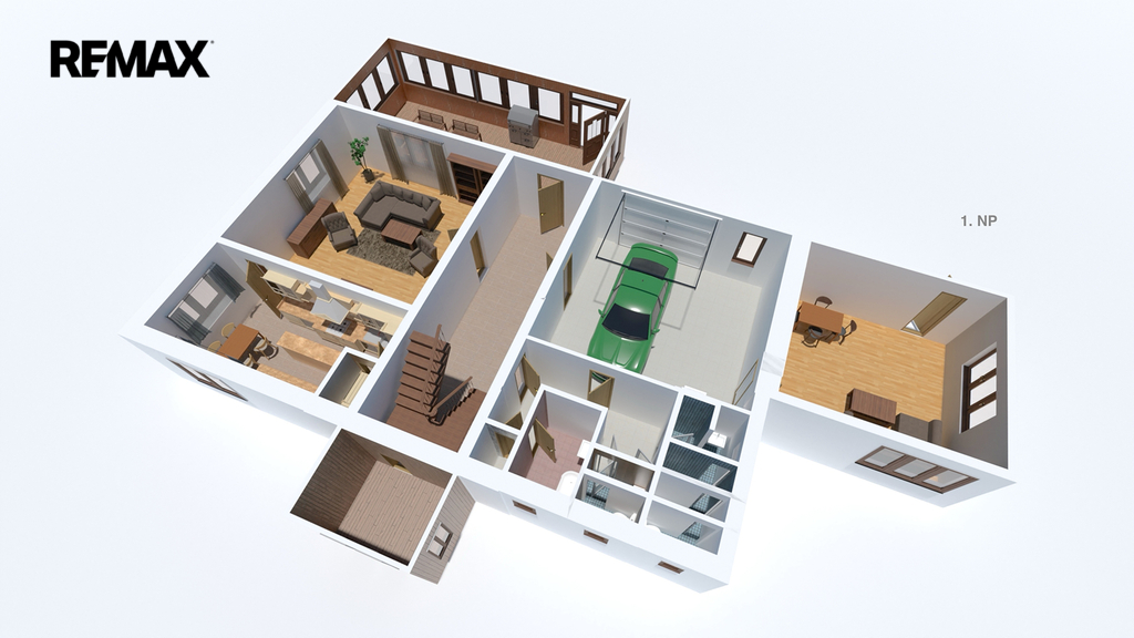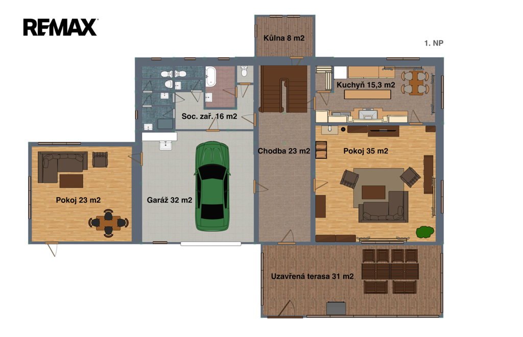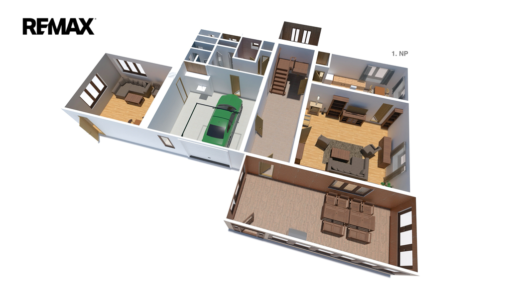 - obývací pokoj + kuchyně + pokoj + soc. zařízení + garáž + kůlna