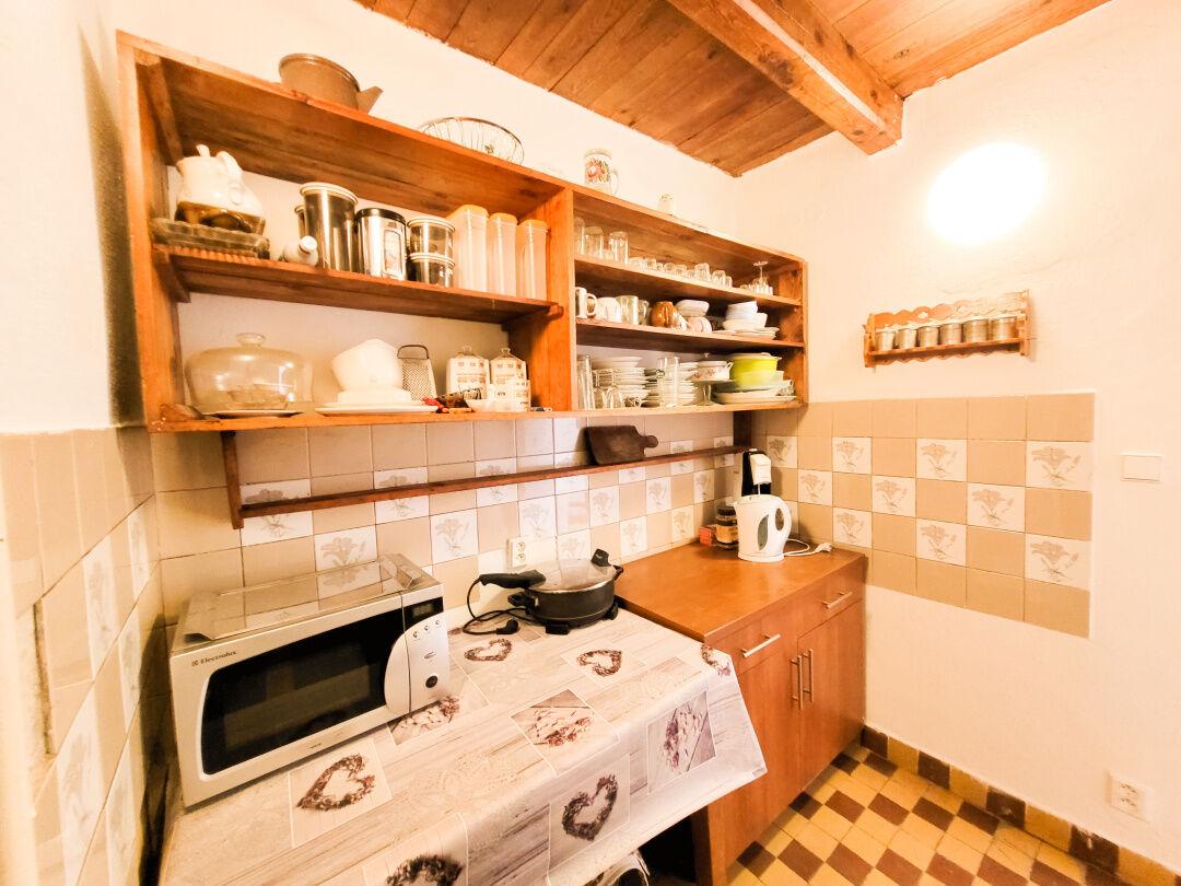 Malý dům o dispozici 2+1 a podlahovou plochou 52 m2 má hlavní obytnou místnost, ložnici, kuchyňku, koupelnu a komoru.