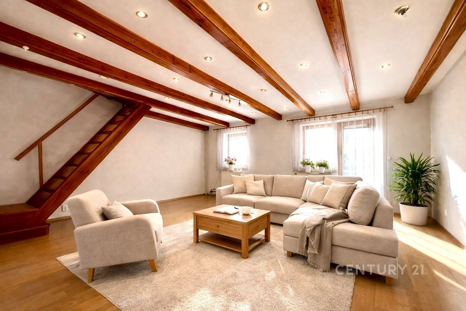 V 1.NP domu je prostorný byt o dispozici 3+1, kde najdeme vstupní chodbu, kuchyni s kuchyňským koutem, vybavenou veškerými spotřebiči, obývací pokoj s přímým vstupem na terasu do ulice, z obývacího pokoje vedou schody na půdní vestavbu, která je plně obyvatelná, vybavená vestavěnou skříní, dále koupelnu s vanou a sprchovým koutem, samostatnou toaletu, technickou místnost, ložnici se vstupem na terasu do vnitrobloku, která je ideálním místem pro odpočinek a relaxaci.