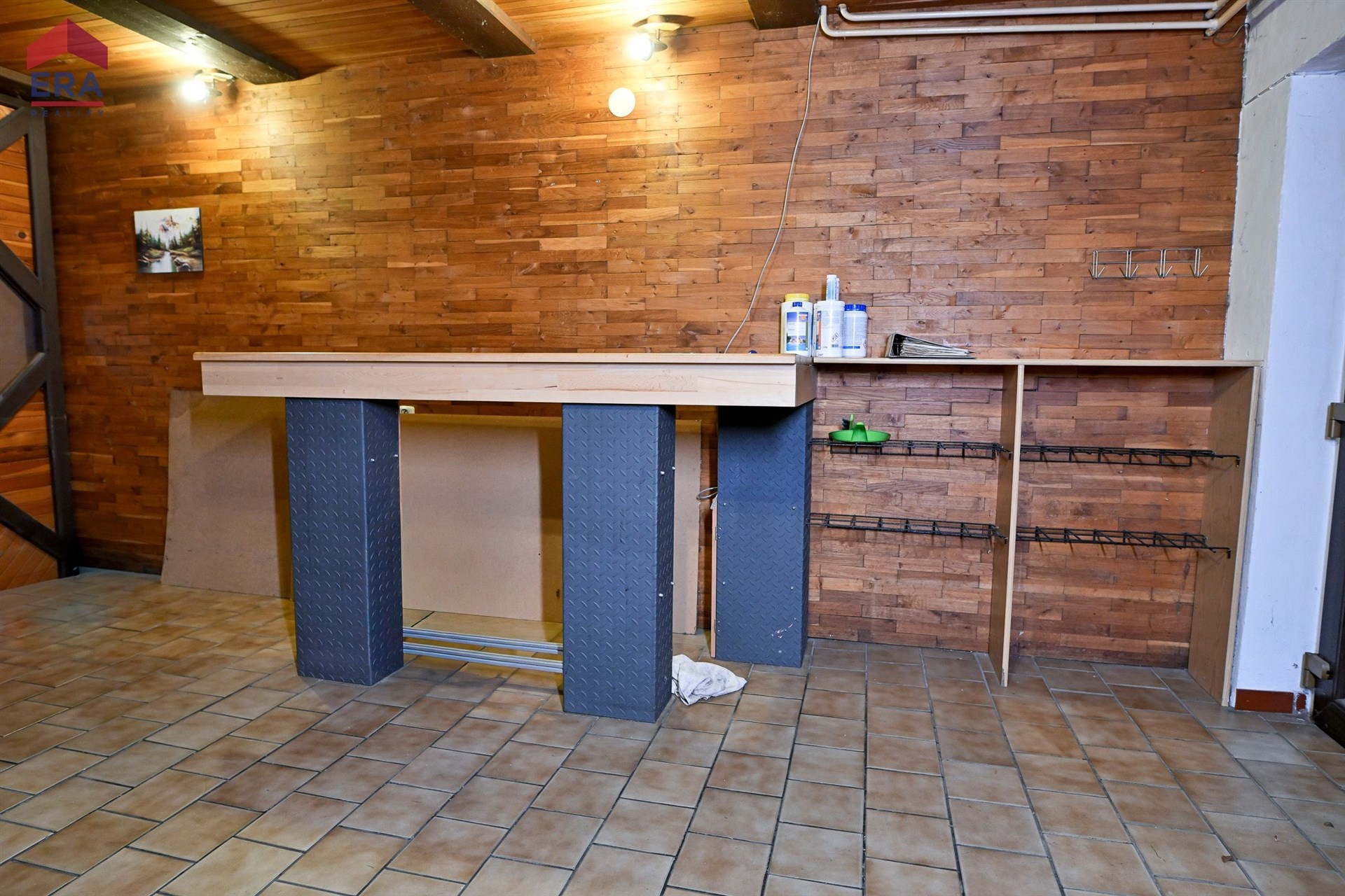 Dispozice domu : přízemí vstupní hala s krbem, sklep, WC , sprcha, prostor pro saunu, garáž , dílna, kotelna ( el.boiler, plyn.kotel)