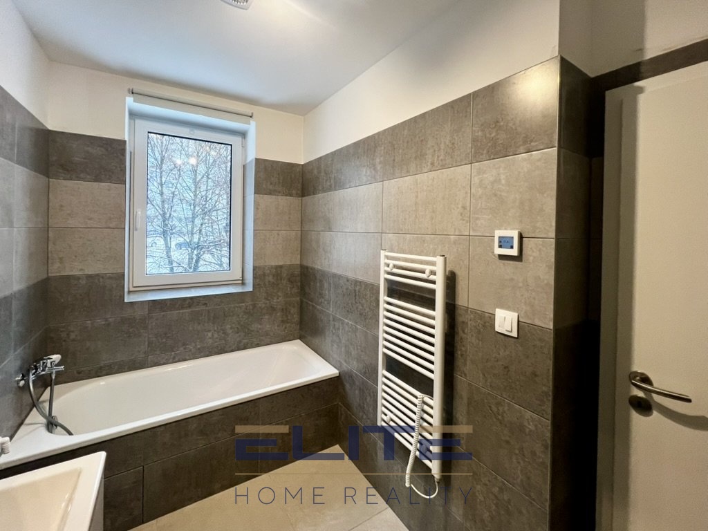 - komfortní koupelna s oknem – vana, umyvadlová skříňka, topný žebřík, WC, prostor pro pračku
