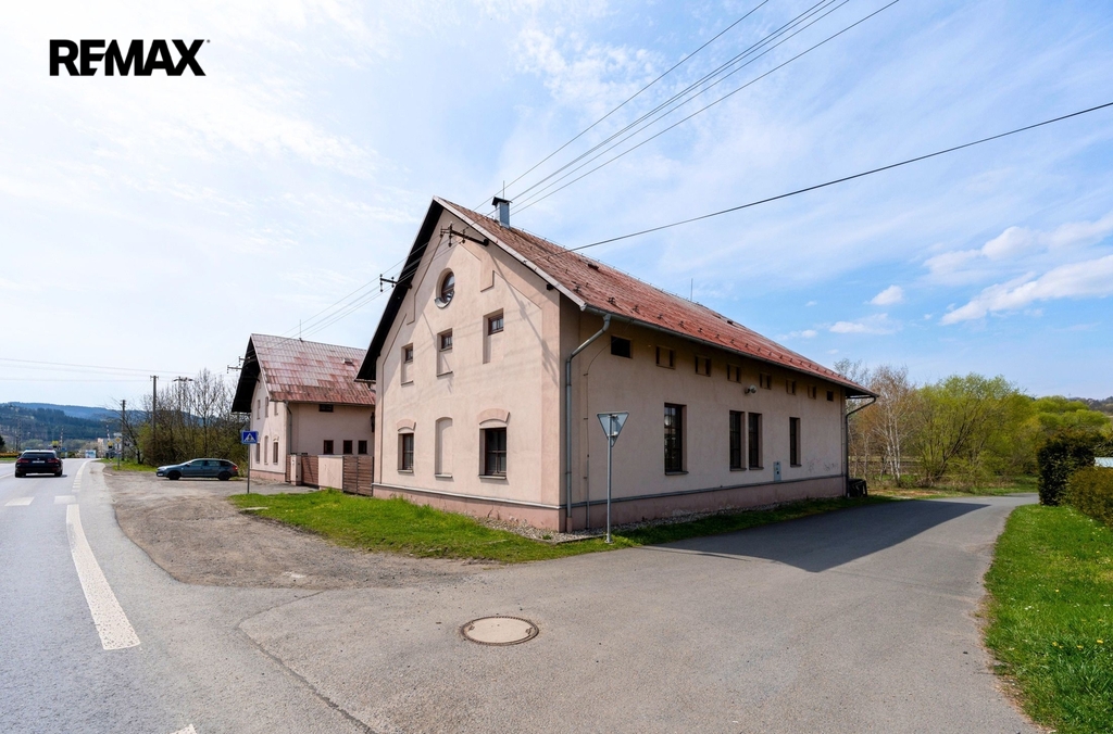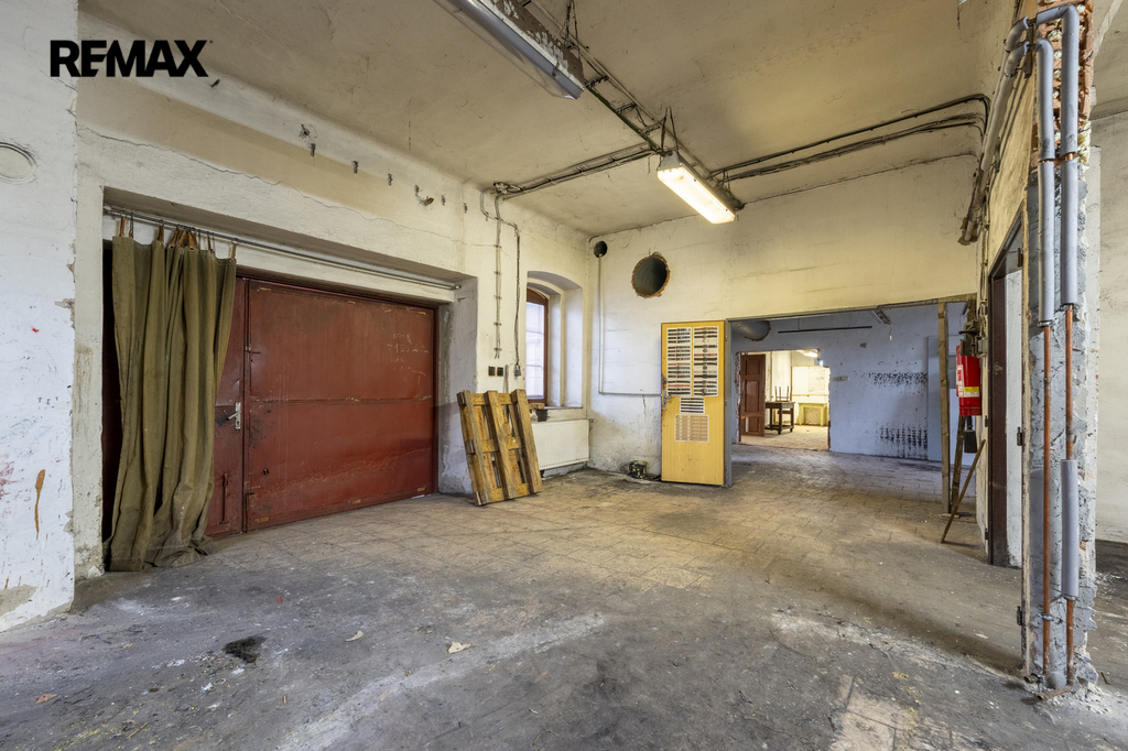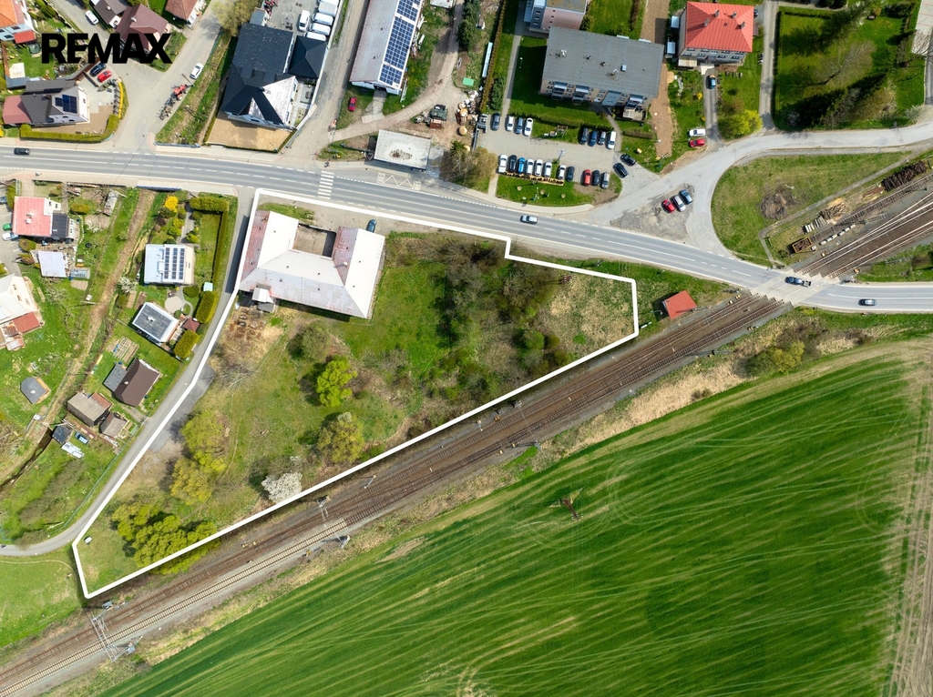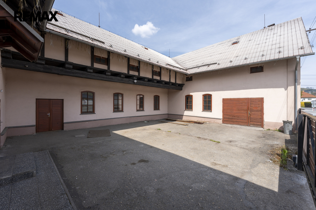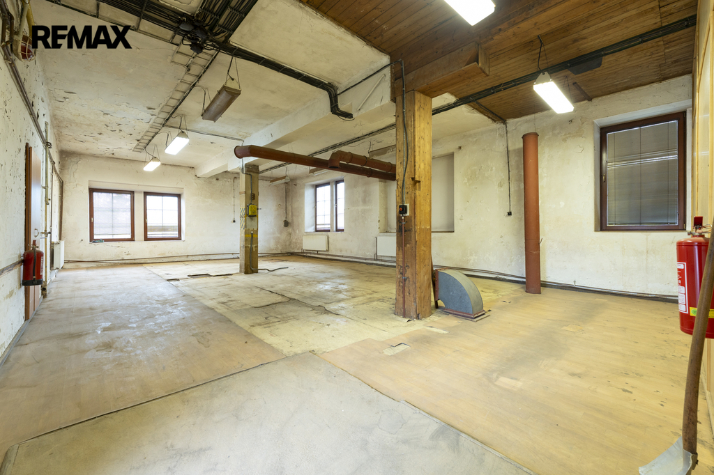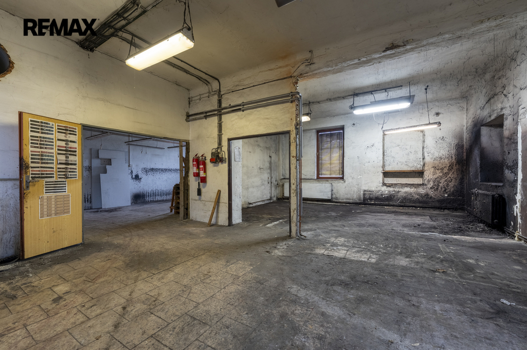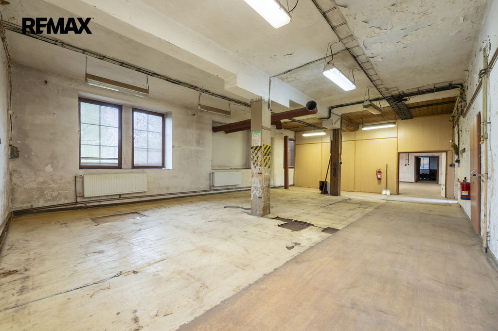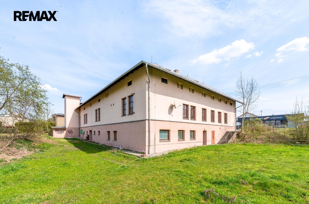 Dvoupodlažní budova ve tvaru U se zastavěnou plochou 599 m² je částečně podsklepená a stojí na pozemku o celkové výměře 7 472 m², který nabízí dostatek manipulačních i parkovacích ploch a další možnosti využití.