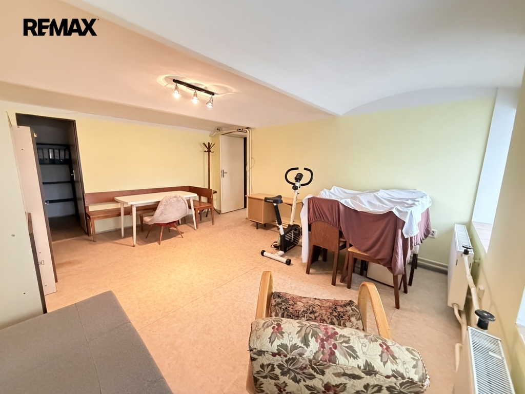 V 1. podzemním podlaží, které je z boční a zadní strany na úrovni terénu, se nachází byt o dispozici 2+1 s vlastní koupelnou a toaletou, dále sklepní prostory.