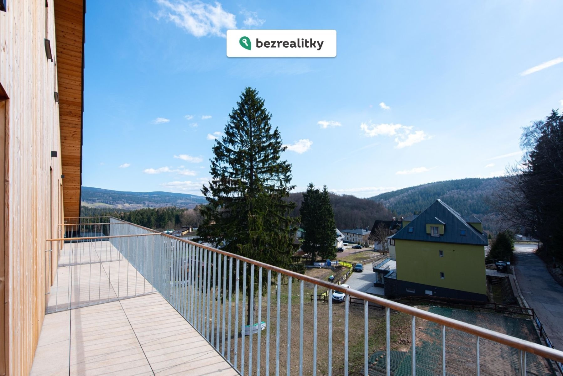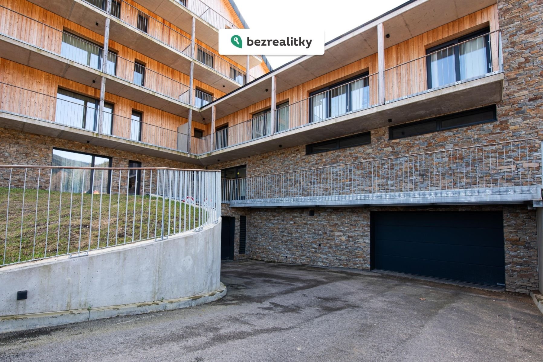 Apartmán se nachází v 5. patře (předposledním) moderní novostavby s výtahem, díky čemuž nabízí klid, soukromí a krásný výhled do okolní krajiny.