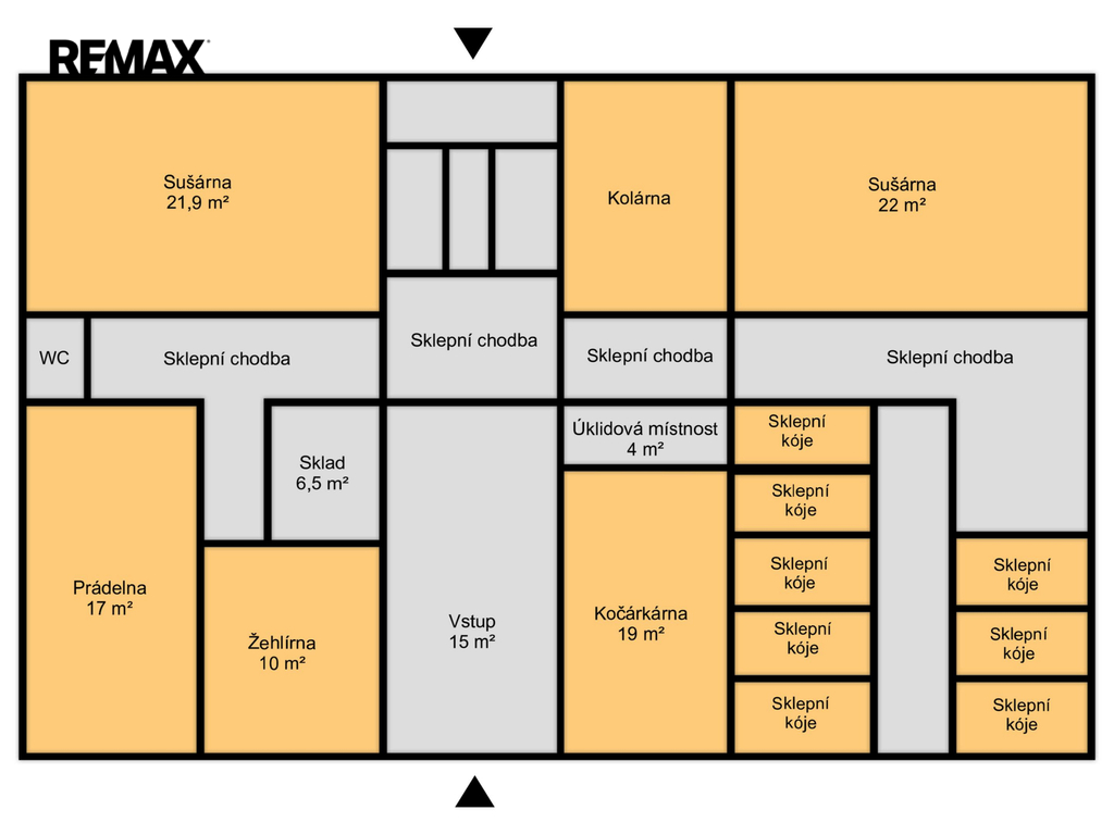 Prostorné společné prostory: prádelna, sušárna, kolárna, kočárkárna, sklad, WC