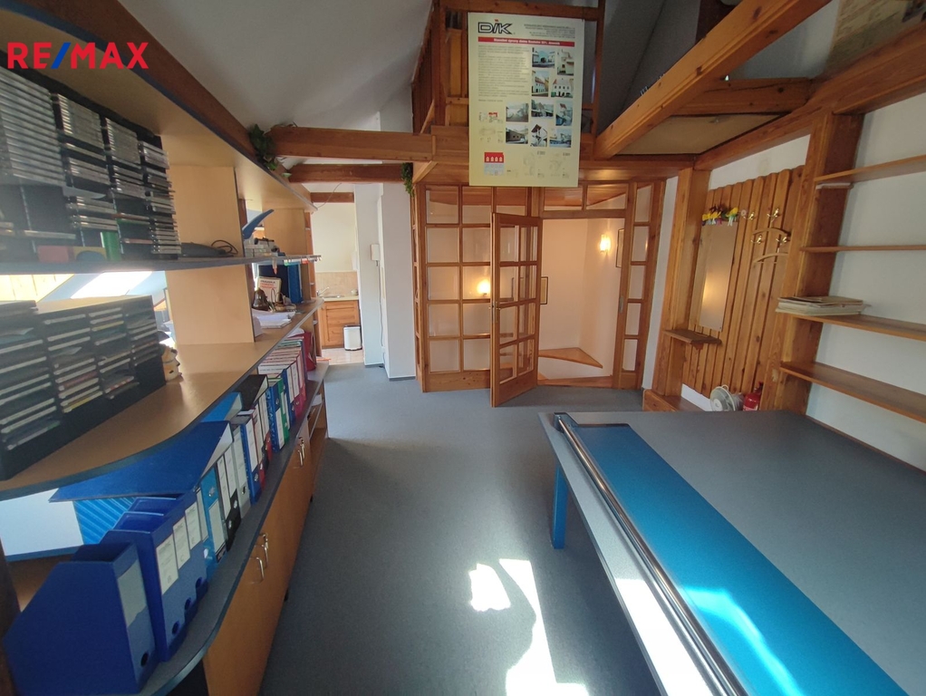 Cihlový dům kombinuje obchodní prostor s kanceláří v přízemí a dále s kancelářemi v 2.NP a podkroví. Díky tomu může být nemovitost využita i nadále jako dům s kancelářemi a prostorami pro podnikání, případně bydlení. Ideální místo pro sídlo firmy, ale i jiné podnikatelské záměry (obchod, ordinace, poskytování služeb aj.) parkování před domem (za poplatek), další parkovací místa v těsné blízkosti.