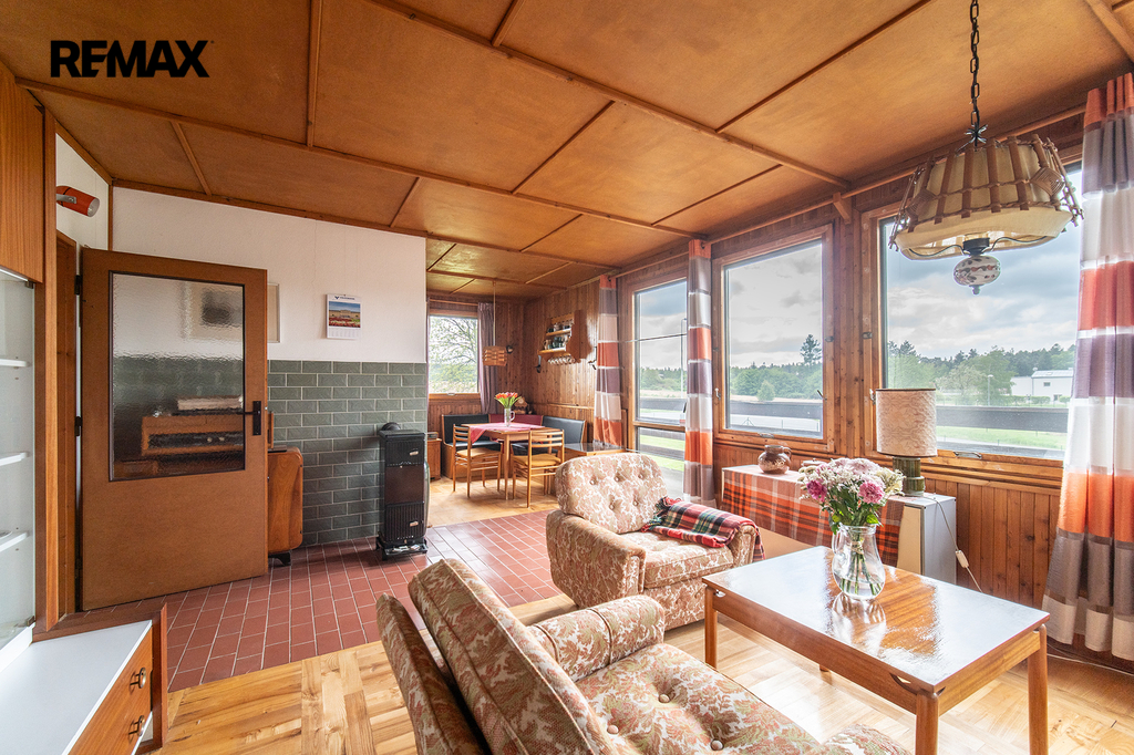Nemovitost z roku 1982 se rozkládá na pozemku o celkové výměře 1 968 m² (dvě samostatné parcely). Součástí je garáž, dvě terasy, dvě koupelny a promyšlené dispoziční řešení vhodné i pro dvougenerační bydlení.