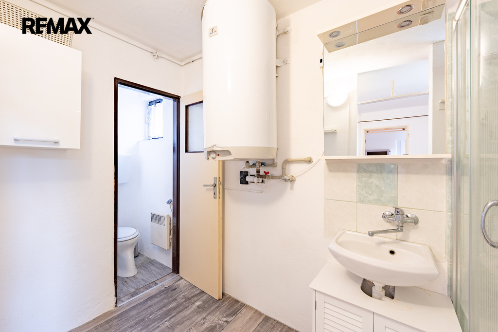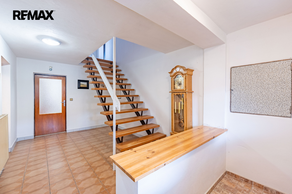 Velkým benefitem je samostatná bytová jednotka s vlastním vstupem v zadní části domu. Není propojená s hlavní částí, a tak poskytuje plné soukromí. Dispozice nabízí obývací pokoj, samostatný pokoj, kuchyni, koupelnu, dvě spíže a zádveří – plnohodnotné bydlení bez kompromisů.