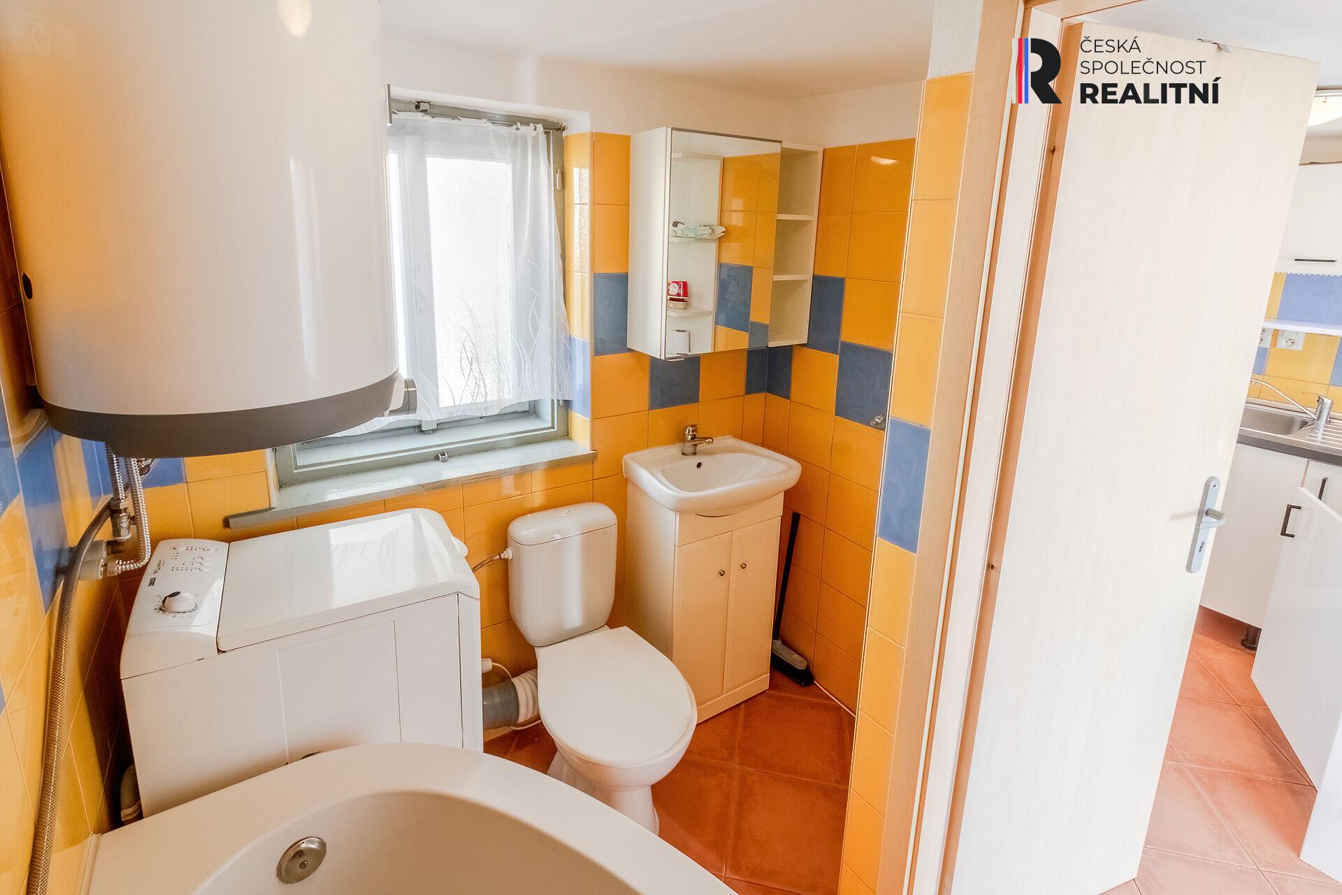 - Prostorná rohová vana, toaleta, umyvadlo a vyhrazené místo pro pračku.