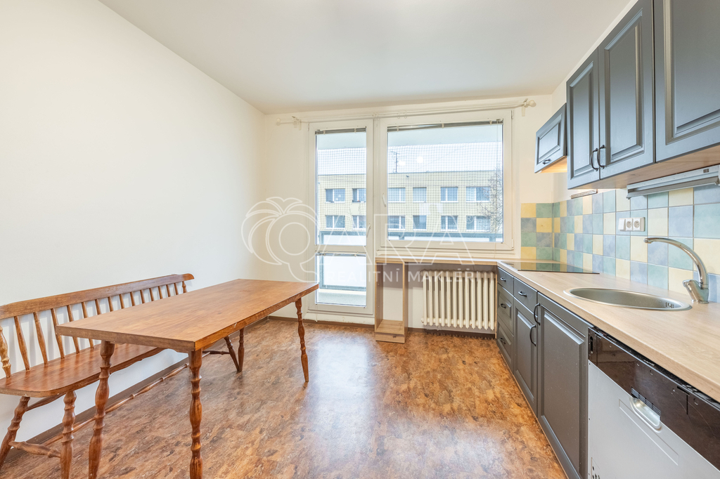 Byt disponuje kuchyní s balkonem, dvěma samostatnými komorami, které oceníte jako praktický úložný prostor, a dále oddělenou toaletou a koupelnou s vanou i sprchovým koutem. K bytu náleží také sklep.