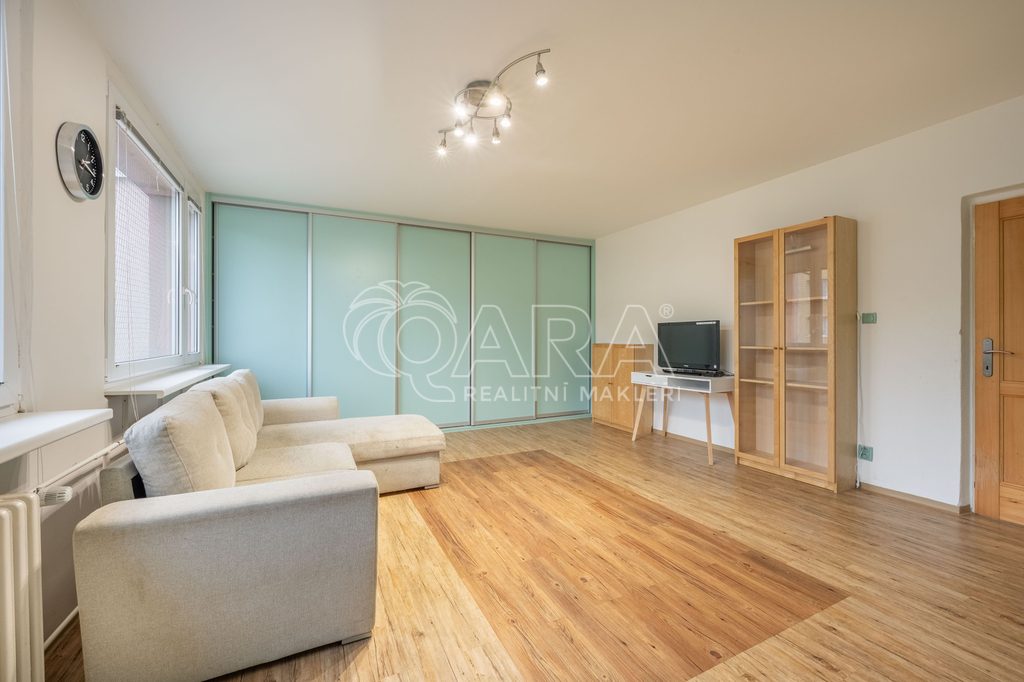 Byt se nachází v příjemném a tichém prostředí obklopeném zelení, ideálním pro rodinné bydlení i pro ty, kteří hledají klid a zároveň dobrou dostupnost do Prahy.