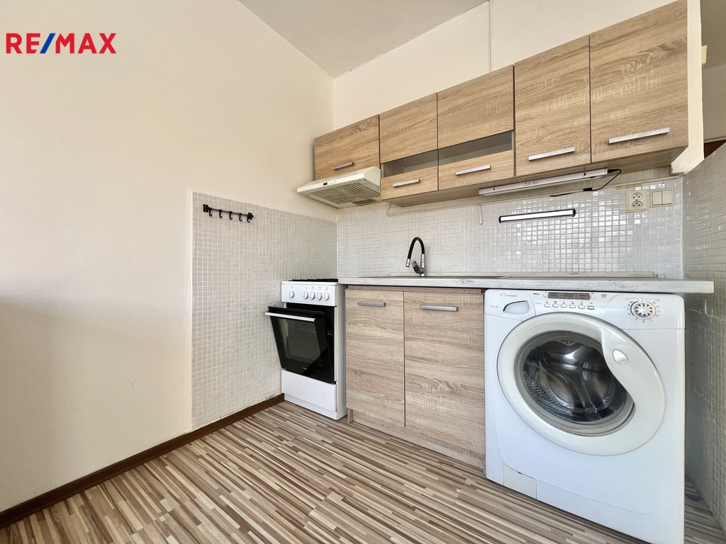 Byt prošel částečnou rekonstrukcí – potěší vás nová kuchyňská linka i sprchový kout.