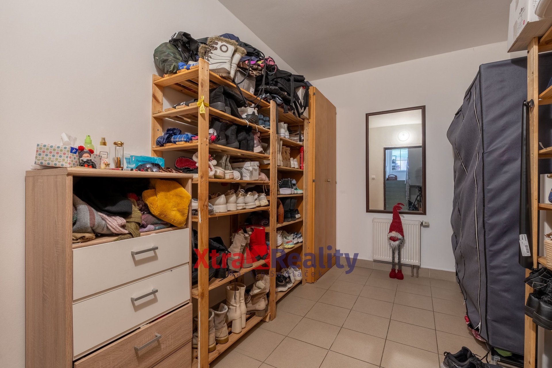 V přízemí nalezneme již zmiňovanou garáž, kancelář, která se nachází hned u vstupních dveří a návštěva tak nebude narušovat rodinný život; dále komoru, kotelnu, prádelnu a další místnost, která může sloužit na uskladnění sezónních věcí.