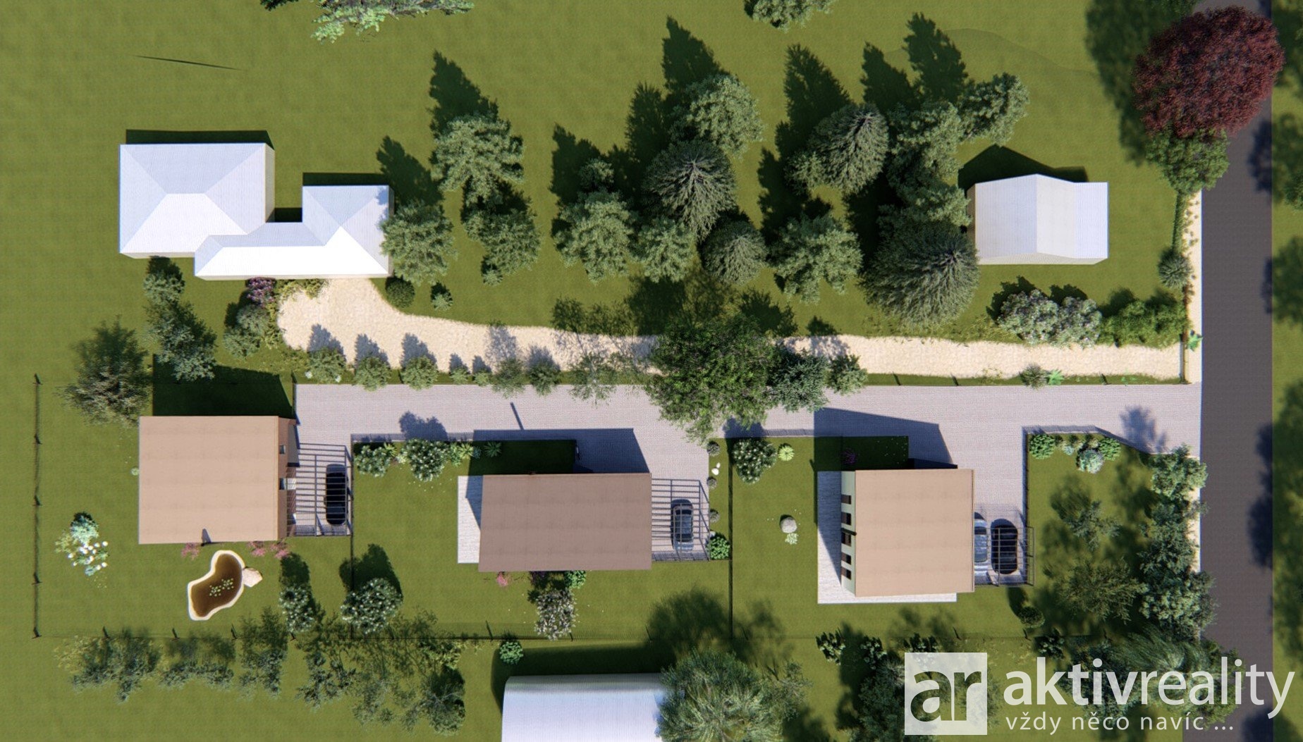 Součástí pozemku o výměře 676 m² je také prostorná terasa o velikosti 49,8 m², navržená z betonové zámkové dlažby o tloušťce 6 cm. Jde o velmi praktické řešení, které poskytuje stabilní a odolnou plochu pro venkovní posezení, grilování či relaxaci. Samotný pozemek nabízí příjemnou velikost pro rodinné využití – dostatek prostoru pro odpočinek, dětské hry i menší zahradní záhon, aniž by vyžadoval náročnou celoroční údržbu.
