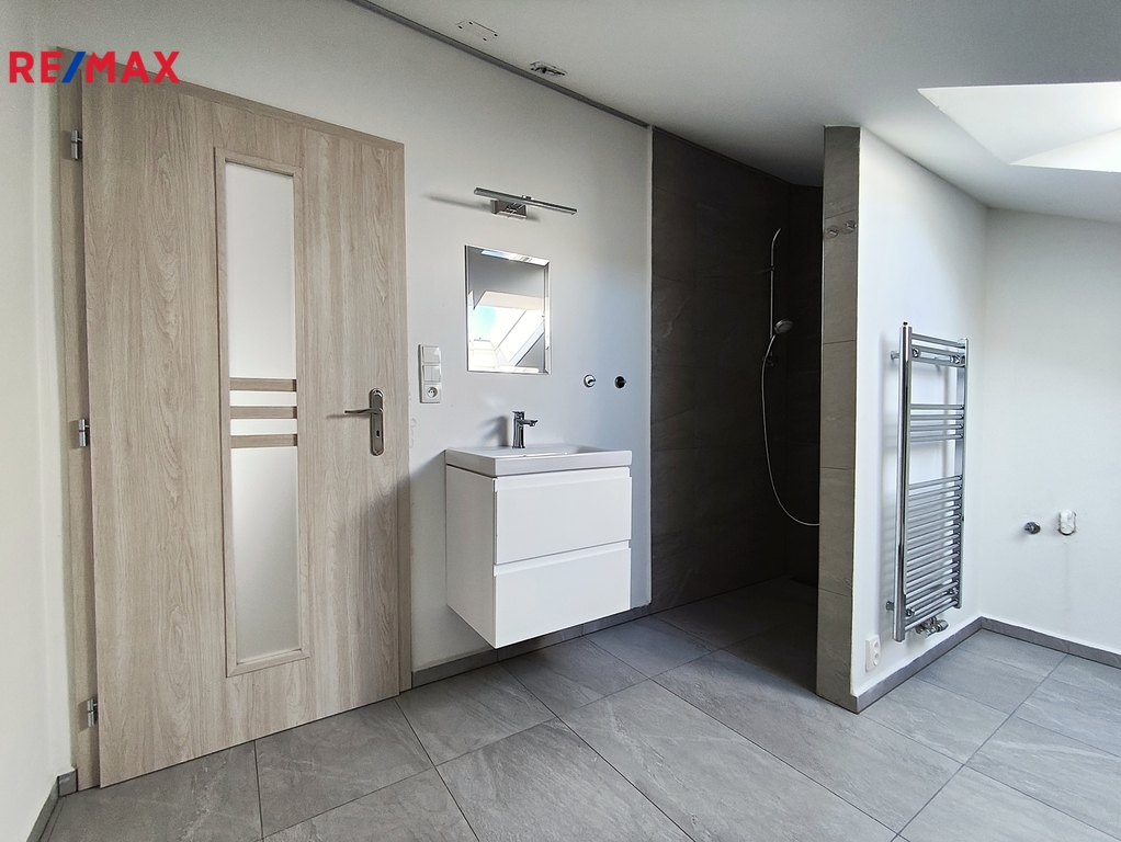 Nabízím k pronájmu podkrovní byt 2+kk o výměře 59 m², umístěný v podkroví rodinného domu, v ulici Průmyslová, Kamenný Újezd.