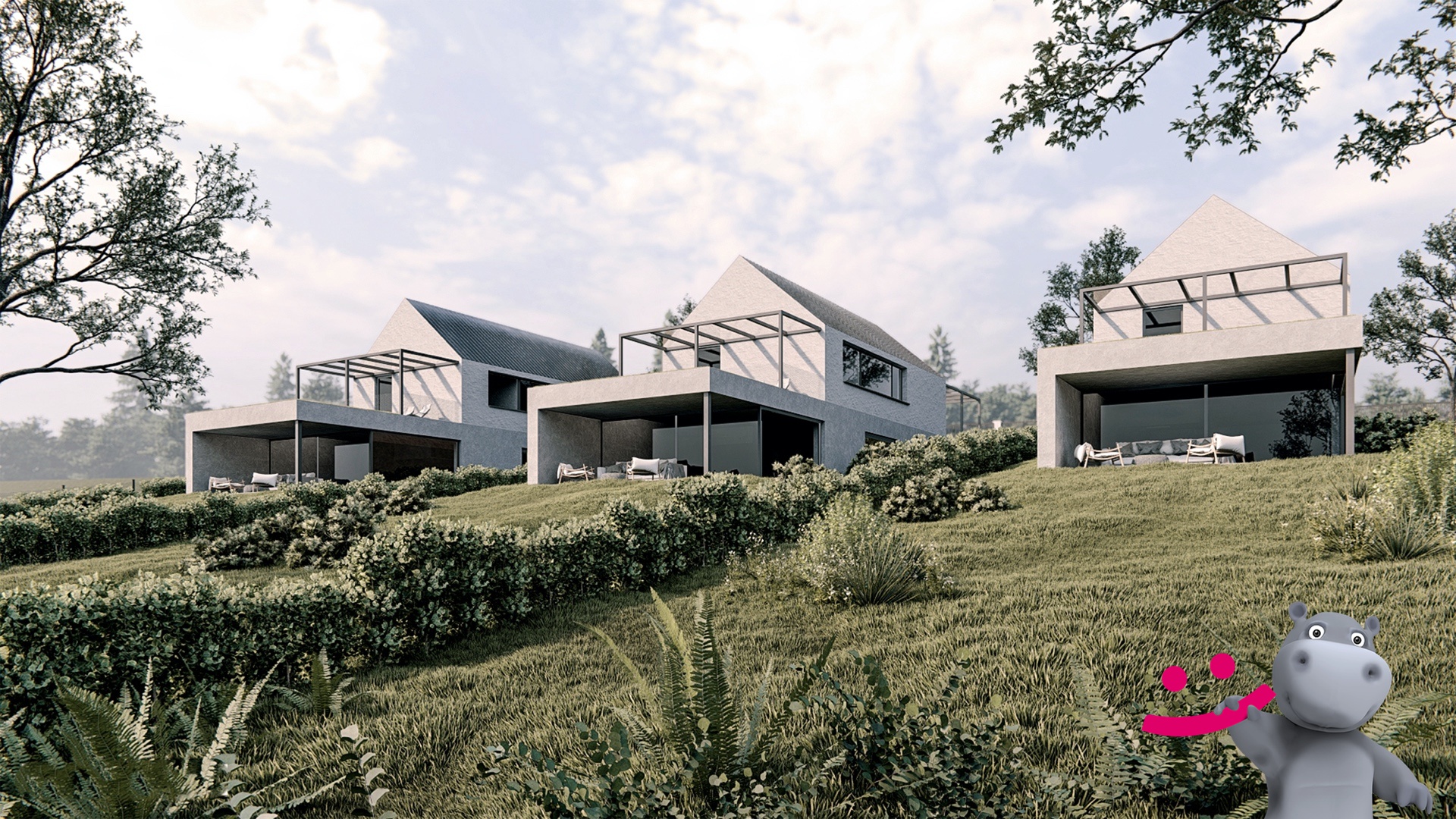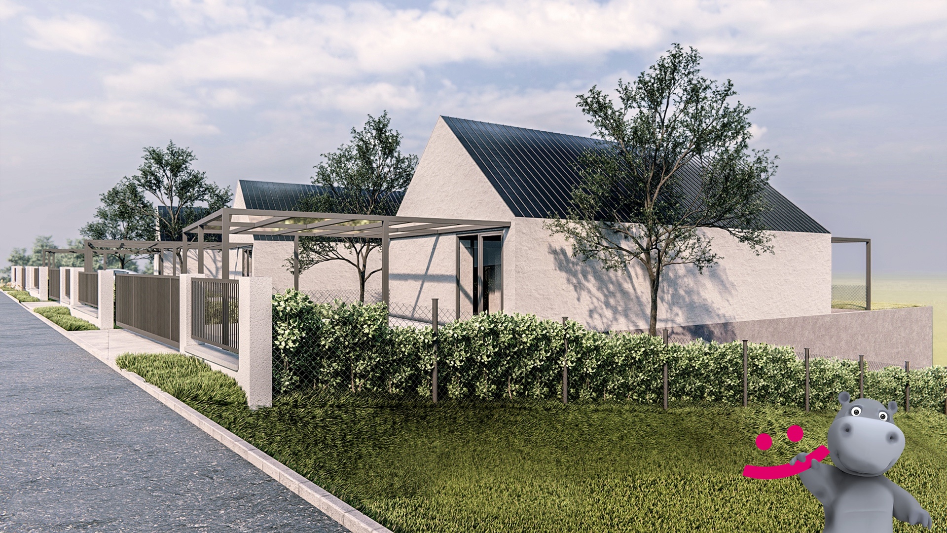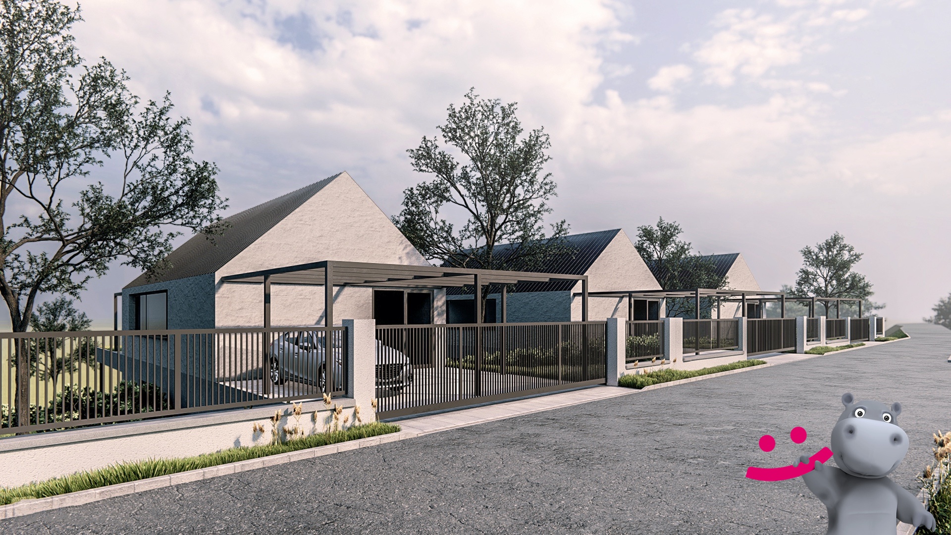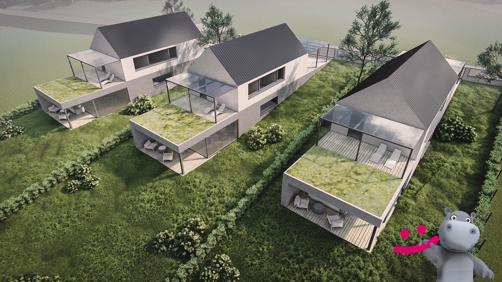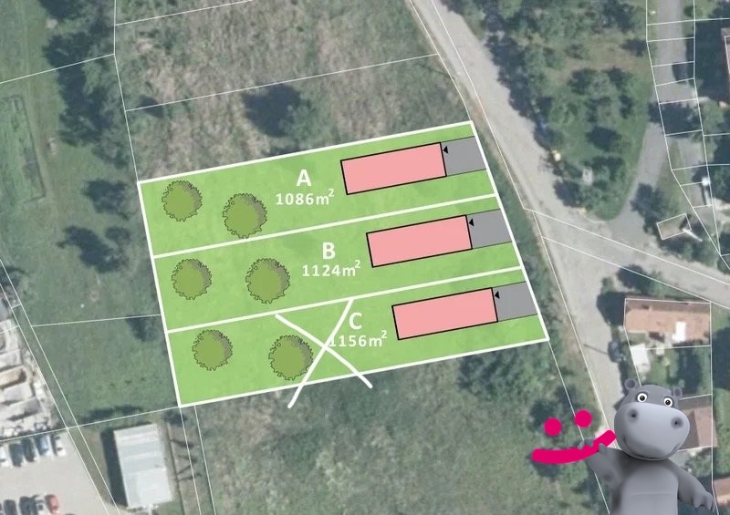 Dle stavebního úřadu a územního plánu lze na pozemku vybudovat rodinné domy, které budou dodržovat ráz okolní zástavby, čili jednopodlažní domy popřípadě i s obytným podkrovím, viz. vizualizace.