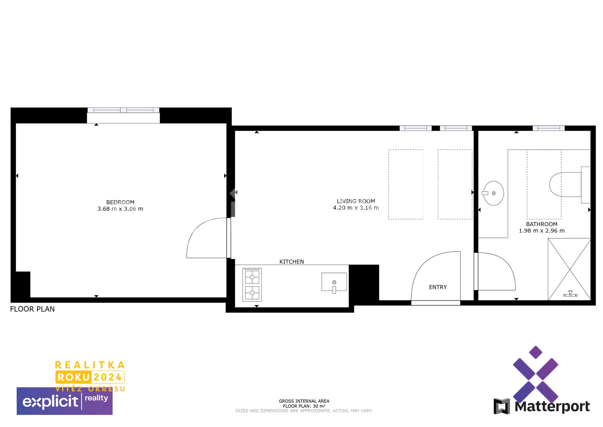 - Celková podlahová plocha: 30 m²