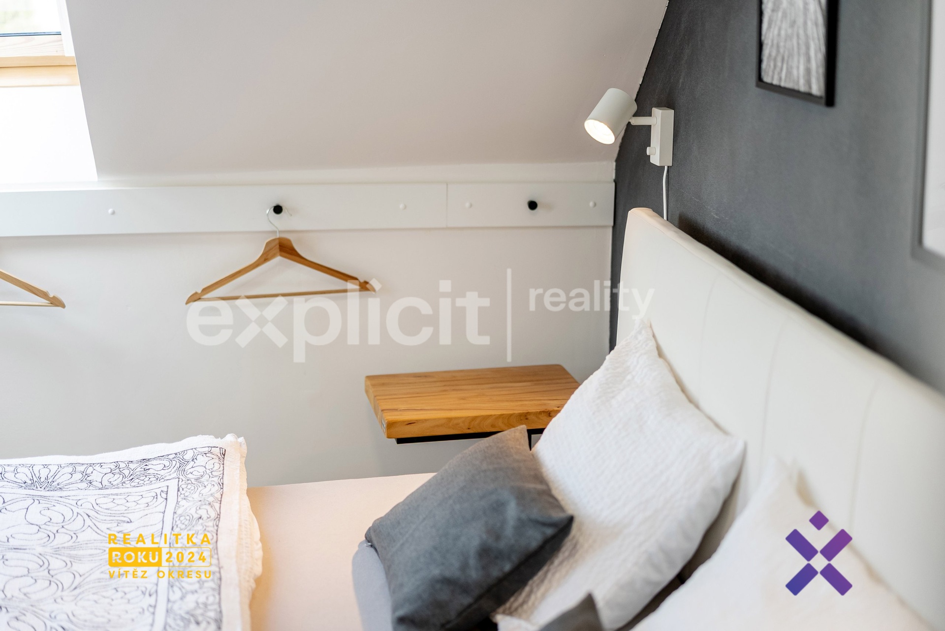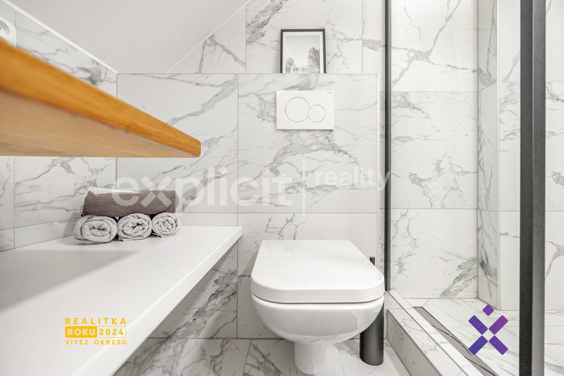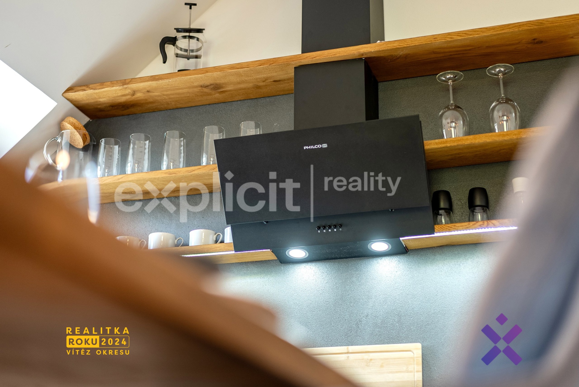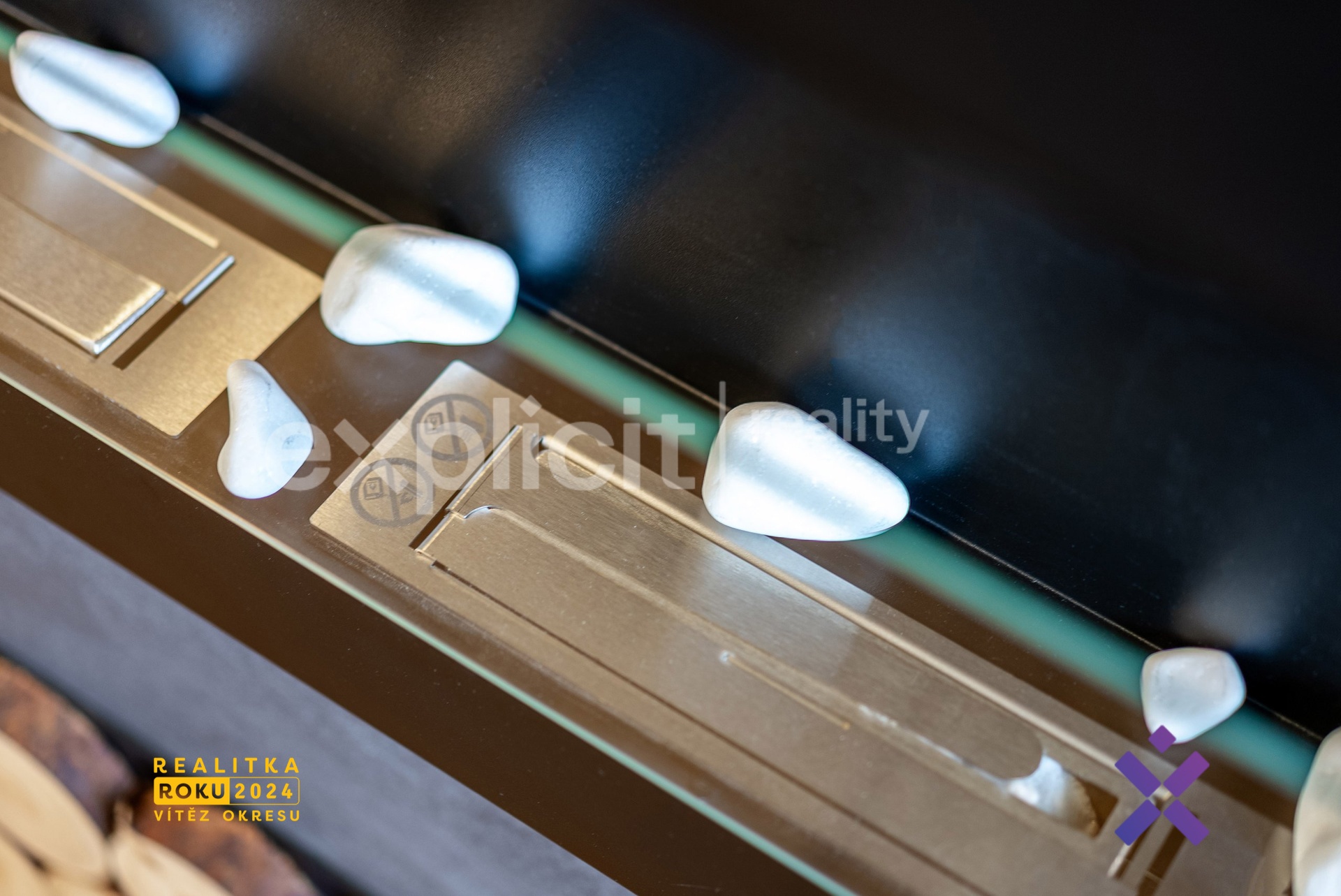 Interiér byl navržen s důrazem na moderní design a kvalitní provedení. Při rekonstrukci byly použity vysoce kvalitní materiály a celý apartmán je ve výborném, udržovaném stavu. Podlaha je vyrobena z masivního dubového dřeva. Dům, ve kterém se apartmán nachází, prošel kompletní rekonstrukcí před dvěma lety, je zateplený a společné prostory jsou ve výborném stavu díky aktivnímu fondu oprav.