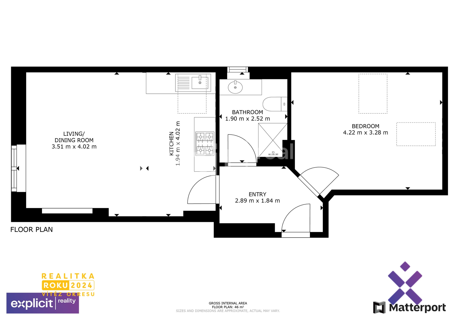 | Dispozice/podlahová plocha: | 2+kk/46 m² |